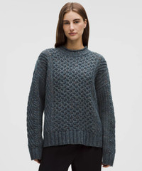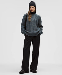 Designed for Casual Soft, Wool-Blend Knit Fabric - Soft - Lofty - Naturally breathable - Linen neps—small clusters of fibres in the yarn—give a speckled look - Be gentle and treat with care. Please refer to the material and care section below for full fibre content information and wash instructions Oversized Fit, Hip Length - An exaggerated fit that feels extra roomy - Sits below the waistband for moderate, everyday coverage Product Features - Mock neckline Material and care Materials Trim: 100% Merino Wool - Cuff: 29% Wool25% Nylon22% Organic Cotton14% Recycled Nylon9% Linen1% Elastane - Hem Band: 29% Wool25% Nylon22% Organic Cotton14% Recycled Nylon9% Linen1% Elastane - Body: 30% Wool24% Nylon22% Organic Cotton14% Recycled Nylon10% Linen Care Hand Wash Cold Gentle - Do Not Bleach - Lay Flat To Dry - Do Not Iron - Dry Clean - Handle With Care - Reshape While Wet To Original Size - Turn Garment Inside Out