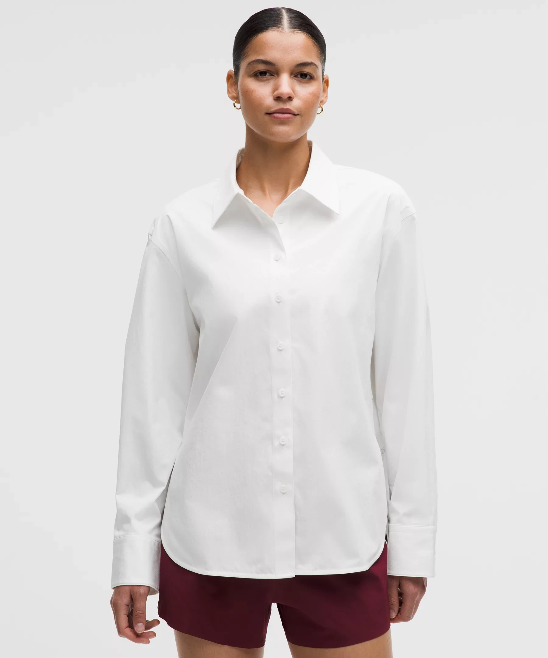 Designed for Casual Lightweight, Woven Fabric - Lightweight - Sweat-wicking - Quick-drying Relaxed Fit, Bum-Covering Length - A loose fit with a little extra room - Long length keeps bum and hips covered Product Features - Wide cuff with button placket - Box pleat on back yoke - Curved hem for extra coverage Material and care Materials Body: 71% Polyester29% Elastomultiester Care Machine Wash Cold - Do Not Bleach - Tumble Dry Low - Do Not Iron - Do Not Dry Clean - Wash With Like Colors