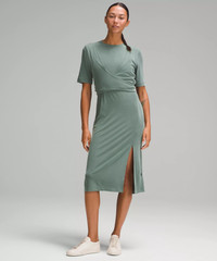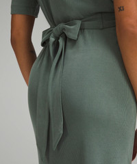 Designed for Casual Ribbed, Modal-Blend Fabric - Ribbed - Peach-fuzz soft Classic Fit, Midi Length - An easy fit that floats away from your body - Hits below the knee to above the ankle - Crew neck for coverage Product Features - Wrap the ties around the front of your waist and secure them in the back for a custom fit - Side slit Material and care Materials All: 31% Polyester (recycled)64% Lenzing Modal5% Elastane Care Machine Wash Cold - Do Not Bleach - Tumble Dry Low - Do Not Iron - Do Not Dry Clean - Remove Promptly After Wash - Turn Garment Inside Out - Wash Separately