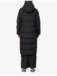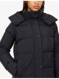 PRODUCT DETAILS - lululemon shell-down jacket - 100% polyester; filling 80% down, 20% goose feather; lining 100% polyester; pocketlining 100% polyester - Popper fastening and concealed zip fastening at front - Regular fit, high-neck, detachable hood, long sleeves, brand print at sleeve, internal ribbed cuffs, two zip pockets at front, all-over quilted and padded, fully lined - Machine wash at 30°C - True to size - Model is 5ft 10in/1.78m and wears a size UK 8 - Midweight, slight stretch Ref: R04517453