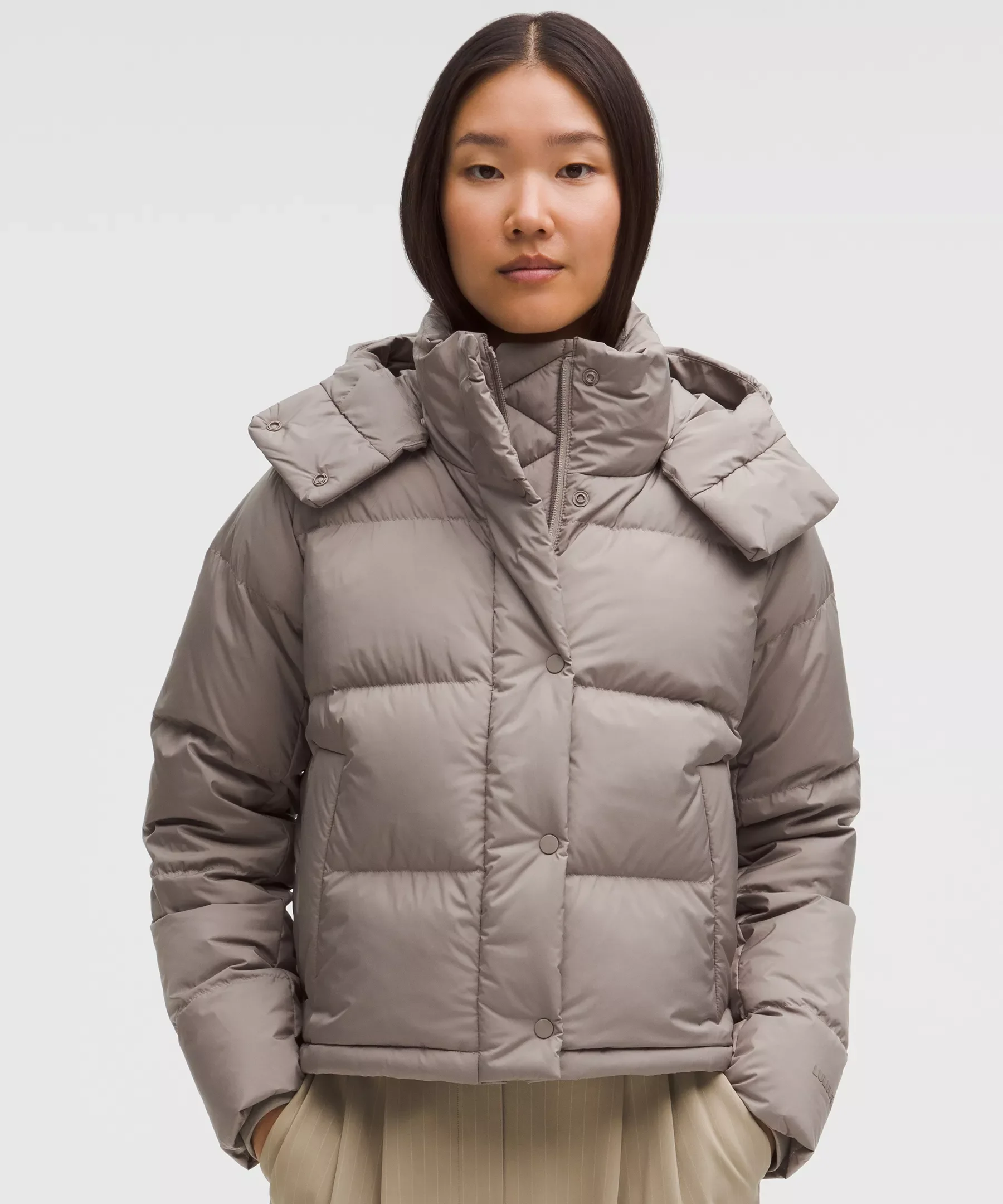 Designed for Casual Water-Repellent, SoftMatte™ Fabric - Water-repellent - Windproof - 600-fill-power goose down insulates through extra loft - 100% of our down is certified to the Responsible Down Standard (RDS) by Control Union (No. 847515) - This product contains recycled polyester made from repurposed plastic waste Relaxed Fit, Cropped Length - Relaxed fit feels roomy and can be worn over larger layers. Size down if you prefer a slimmer fit Product Features - Removable hood - Cinchable hem - Zippered exterior pockets with a hidden phone sleeve - Interior pockets hold the essentials - Close-fitting interior cuffs help hold in heat Material and care Materials Cuff: 57% Nylon24% Polyester19% Lycra Elastane - Hood Lining: 100% Recycled Polyester - Body: 100% Recycled Polyester - Filling: 80% Grey Goose Down20% Grey Goose Feather - Trim Filling: 75% Recycled Polyester25% Polyester - Hood: 100% Recycled Polyester - Lining: 100% Polyester - Pocket Lining: 100% Recycled Polyester Care Machine Wash Cold - Do Not Bleach - Tumble Dry Low - Do Not Iron - Do Not Dry Clean - Contains Non-Textile Parts of Animal Origin - Tumble Dry Low With Clean Tennis Balls - Wash Inside Out With Zipper Fully Closed - Wash With Like Colors