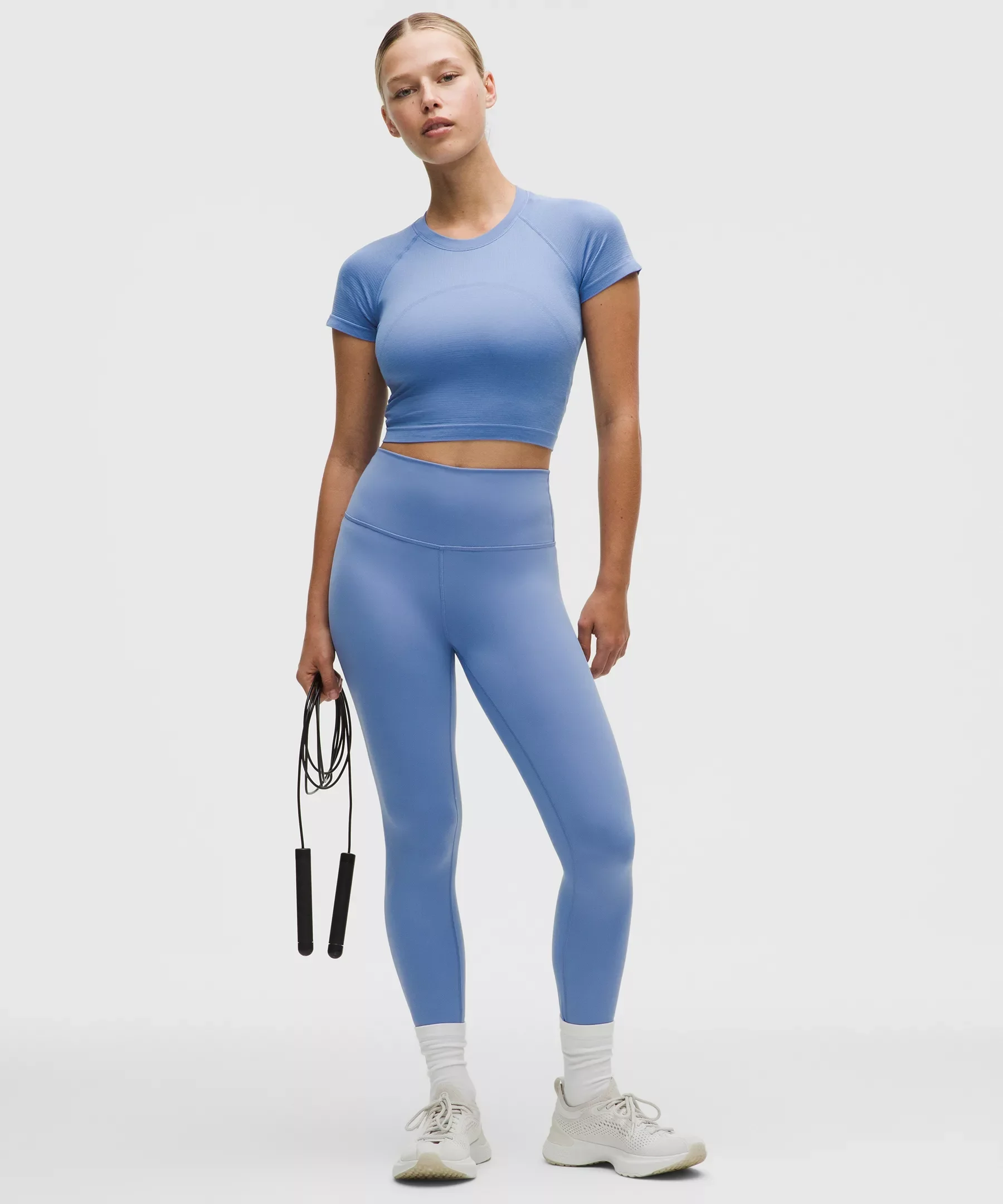 Designed for Training and Pilates Our Fastest-Drying, Everlux™ Fabric - Our fastest-drying fabric - Breathable - Sweat-wicking - Four-way stretch - Supportive - Feels cool and sleek on the inside, soft and brushed on the outside - Added Lycra® fibre for stretch and shape retention High Rise, 23" Length - Intended to sit below calf Product Features - Waistband drawcord keeps your leggings in place so you don’t have to pull them up - Hidden pocket in the waistband has space for your card and keys Material and care Materials Body: 77% Nylon23% Lycra Elastane Care Machine Wash Cold - Do Not Bleach - Tumble Dry Low - Do Not Iron - Do Not Dry Clean - Wash With Like Colors