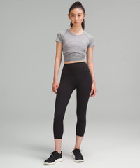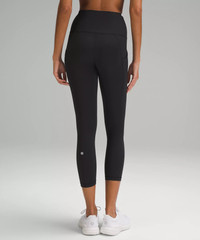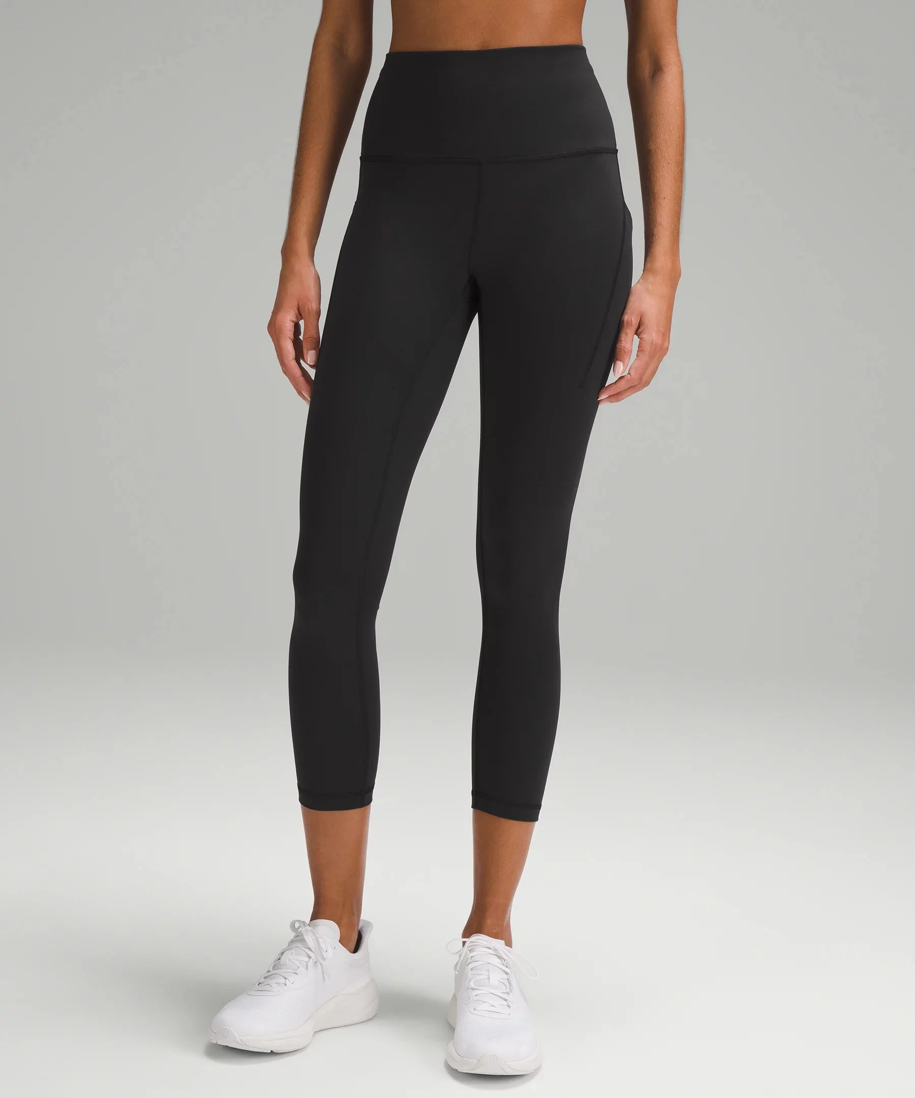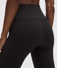 Our Fastest-Drying, Everlux Fabric Our fastest-drying fabric Breathable Sweat-wicking Four-way stretch Supportive Feels cool and sleek on the inside, soft and brushed on the outside Added Lycra® fibre for stretch and shape retention High Rise, 23" Length Intended to sit below calf Product Features Side drop-in pockets Back drop-in pocket Waistband drawcord keeps your leggings in place so you don’t have to pull them up Care Wash with like colours Machine wash cold Do not bleach Tumble dry low Do not iron Do not dry clean Imported