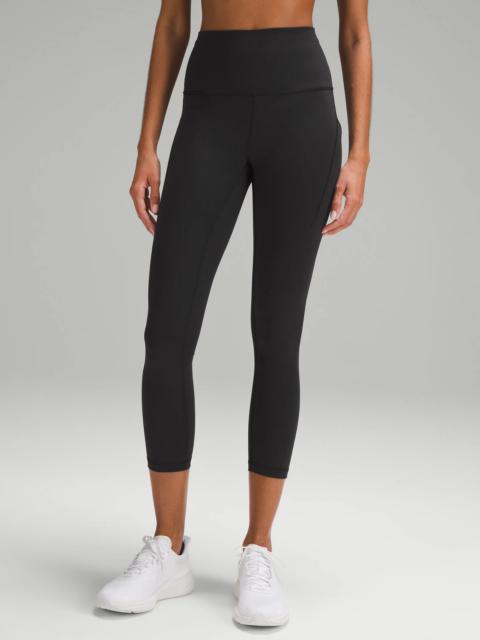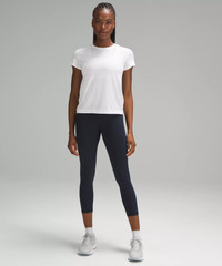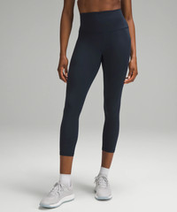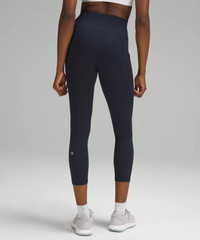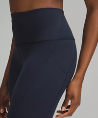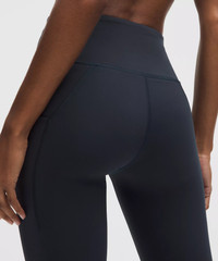 Our Fastest-Drying, Everlux Fabric Our fastest-drying fabric Breathable Sweat-wicking Four-way stretch Supportive Feels cool and sleek on the inside, soft and brushed on the outside Added Lycra® fibre for stretch and shape retention High Rise, 23" Length Intended to sit below calf Product Features Side drop-in pockets Back drop-in pocket Waistband drawcord keeps your leggings in place so you don’t have to pull them up Care Wash with like colours Machine wash cold Do not bleach Tumble dry low Do not iron Do not dry clean Imported