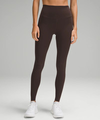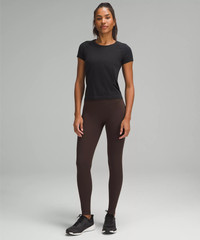 Our Fastest-Drying, Everlux™ Fabric Our fastest drying fabric Breathable Sweat-wicking Four-way stretch Supportive Feels cool and sleek on the inside, soft and brushed on the outside Added Lycra® fibre for stretch and shape retention High Rise, 28" Length Full length intended to sit at ankle Product Features Waistband drawcord keeps your leggings in place so you don’t have to pull them up Hidden pocket in the waistband has space for your card and keys Material and care Materials Body: 77% Nylon23% Lycra® elastane Care Wash with like colours Machine wash cold Do not bleach Tumble dry low Do not iron Do not dry clean Imported