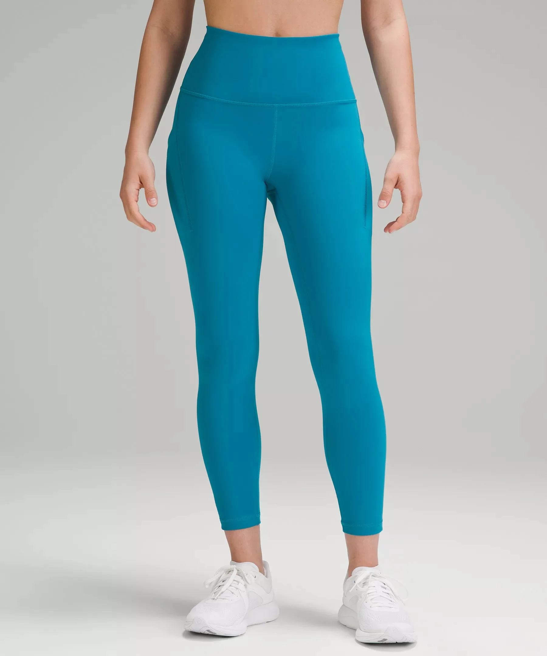 Our Fastest-Drying, Everlux™ Fabric Our fastest-drying fabric Breathable Sweat-wicking Four-way stretch Supportive Feels cool and sleek on the inside, soft and brushed on the outside Added Lycra® fibre for stretch and shape retention High Rise, 25” Length Intended to sit above ankle Product Features Two side drop-in pockets fit your phone Hidden pocket in the waistband has space for your card and keys Waistband drawcord keeps your leggings in place so you don’t have to pull them up Material and care Materials Body: 77% Nylon23% Lycra® elastane Side pocket: 89% Nylon11% Elastane Waistband lining: 56% Polyester33% Coolmax® polyester11% Lycra® elastane Care Wash with like colours Machine wash cold Do not bleach Tumble dry low Do not iron Do not dry clean Imported