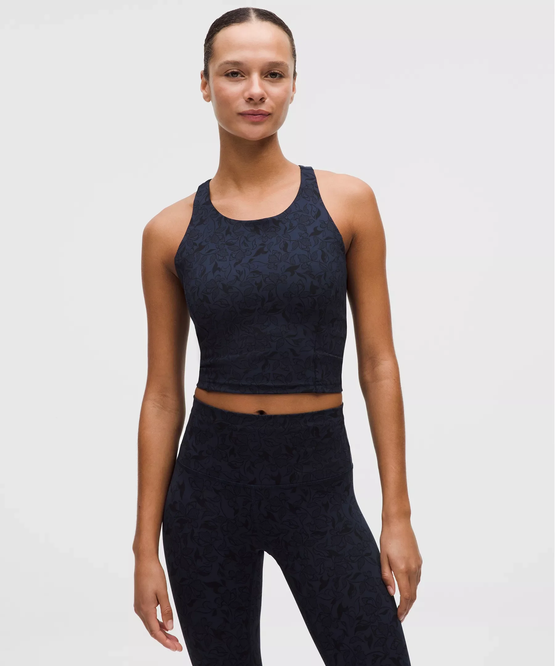 Designed for Training Our Fastest-Drying, Everlux™ Fabric - Our fastest-drying fabric - Breathable - Sweat-wicking - Four-way stretch - Supportive - Feels cool and sleek on the inside, soft and brushed on the outside - Added Lycra® fibre for stretch and shape retention Medium Support, B/C Cups - Intended to provide medium support for B/C cups - Tight fit contours your body - Cropped length is cut above the waist—perfect with high-rise pants - Intended for medium-impact activities Product Features - Built-in shelf bra for added support and coverage - Pockets for optional, removable cups - Racerback shape allows for full range of movement Material and care Materials Cup Lining: 90% Recycled Polyester10% Lycra Elastane - Bra Lining: 83% Recycled Polyester17% Elastane - Body: 77% Nylon23% Lycra Elastane Care Machine Wash Cold - Do Not Bleach - Tumble Dry Low - Do Not Iron - Do Not Dry Clean - Wash With Like Colors
