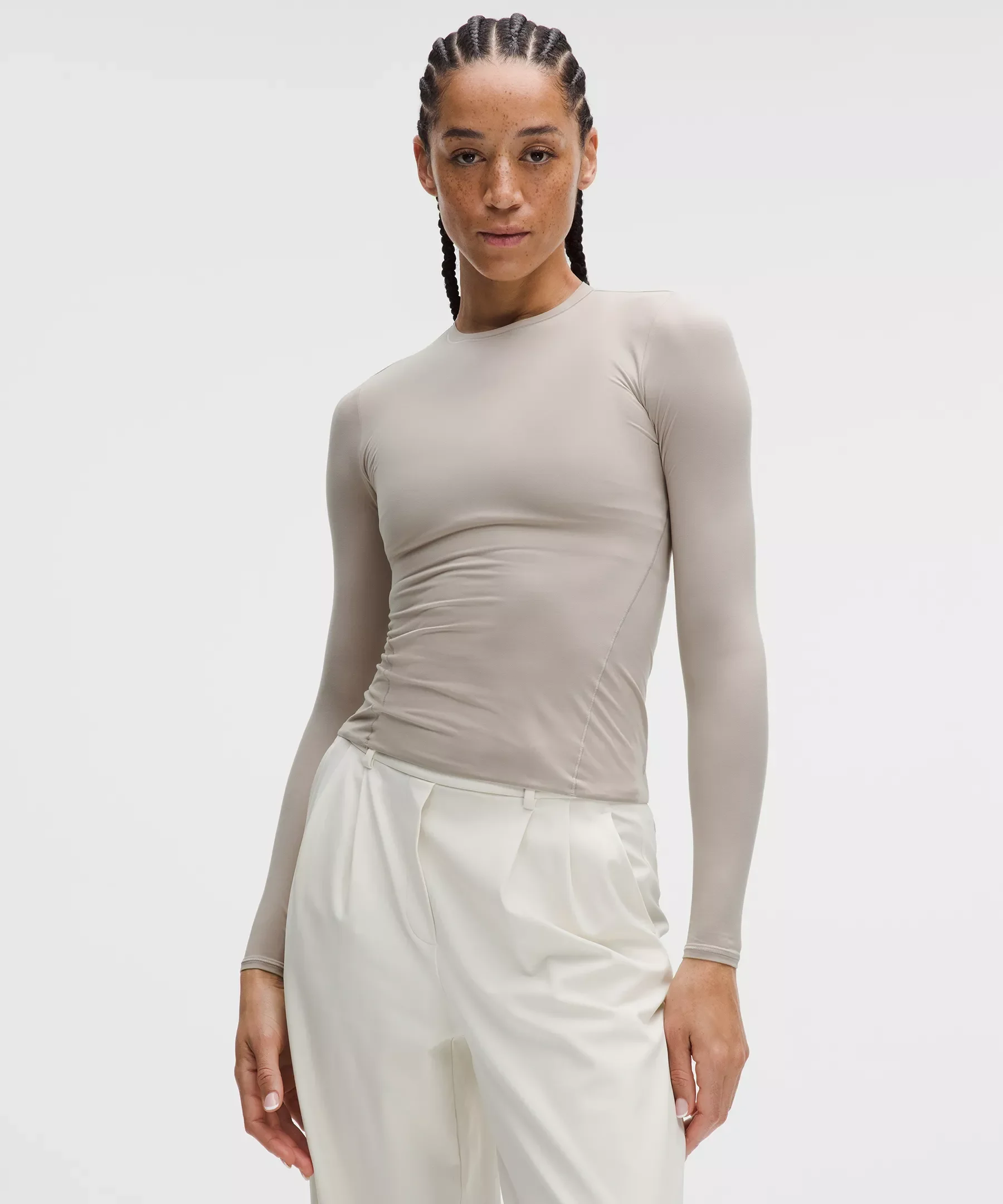 Designed for Casual Ultra-Soft and Lightweight, Nulu™ Fabric - This is an ultra-soft version of our Nulu™ fabric - Lightweight - Brushed for a luxurious feel and an elevated look - Four-way stretch - Sweat-wicking - Quick-drying - Added Lycra® fibre for stretch and shape retention Fit Information - Fabric is double layered for coverage, support, and a seriously soft feel on both sides. The sleeves have a single layer of fabric - Not too short, not too long, just right around the waistband - Contours your body with a fit that feels snug. For a more gentle feel, opt for a size up - XS = lululemon size 4, S = lululemon size 6, M = lululemon size 8, L = lululemon size 10, XL = lululemon size 12-14 Product Features - Side seams are curved to gently accentuate your shape Material and care Materials Body: 79% Nylon21% Lycra Elastane Care Machine Wash Cold - Do Not Bleach - Tumble Dry Low - Do Not Iron - Do Not Dry Clean - Wash With Like Colors