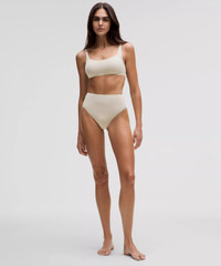Ultra-Soft and Lightweight, Nulu™ Fabric This is an ultra-soft version of our Nulu™ fabric Lightweight Brushed for a luxurious feel and an elevated look Four-way stretch Sweat-wicking Quick-drying Added Lycra® fibre for stretch and shape retention Breathable cotton gusset High Waist, Thong Cut High waist High cut on the back, front, and sides Product Features Bonded waistband and leg openings provide a smooth, seamless fit Material and care Materials Body: 79% Nylon21% Lycra Elastane Gusset: 100% Cotton Care Wash with like colours Machine wash cold Do not bleach Tumble dry low Do not iron Do not dry clean Imported