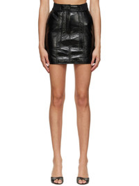 Patent faux-leather skirt. · Paneled construction · Rib knit waistband · Four-pocket styling · Zip-fly · Full satin lining Supplier color: Black