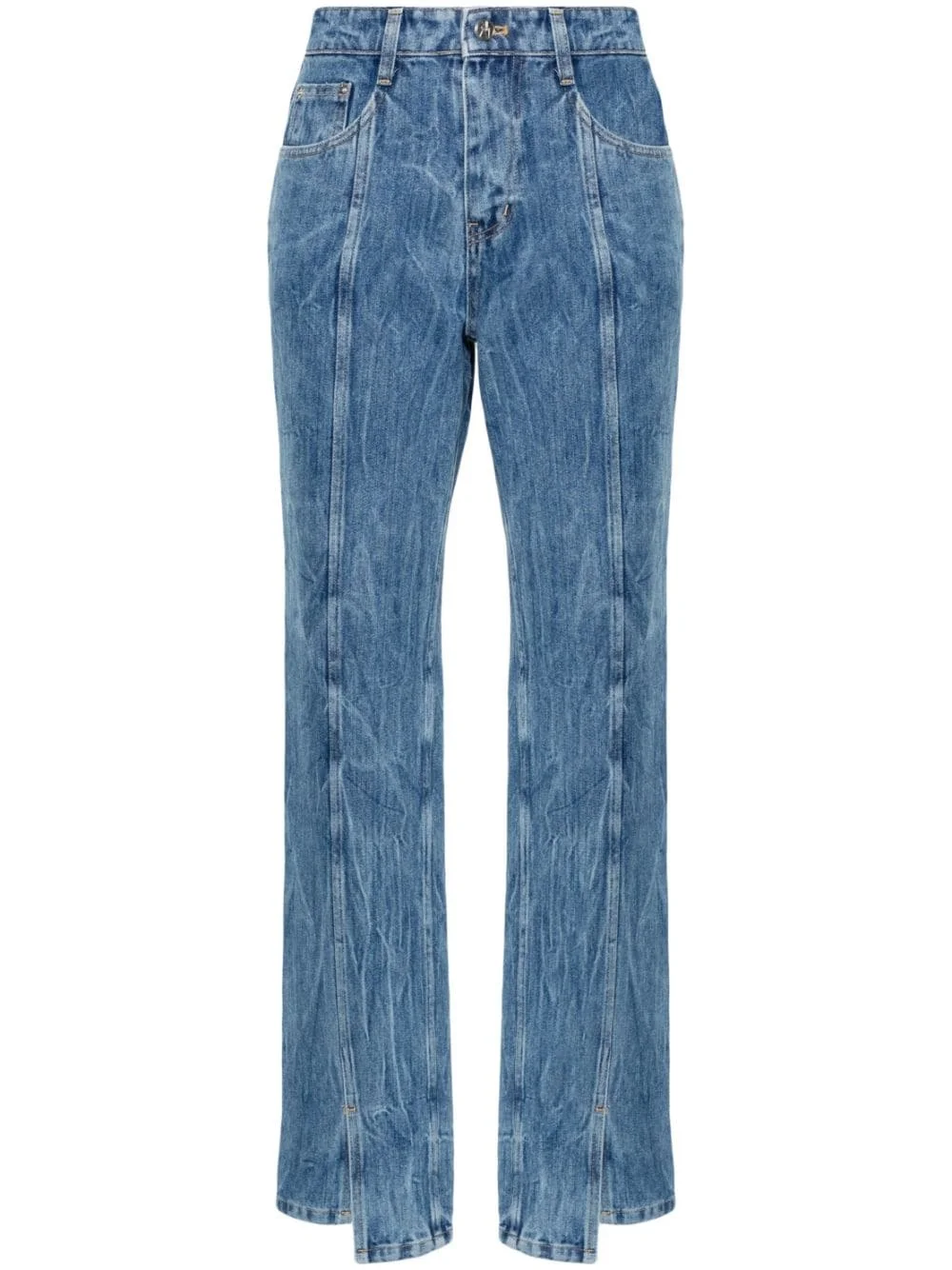 wrinkled-detailed cotton jeans Highlights - Cerulean blue - Cotton - Washed denim - Crinkled finish - Logo patch to the rear - Belt loops - Button fly fastening - Tapered leg - Front slit - Classic five pockets Imported Composition Cotton 100% SIZE & FIT Model measurements Height 5 ft 10 in(1.77 m) Bust/Chest 33.07 in(84 cm) Hips 37 in(94 cm) Waist 24.8 in(63 cm) FittingInformation Designed for a straight-leg fit, these jeans allow for a close fit at the waist and an unrestricted and comfortable fit over the leg Sturdy and hard-wearing, this denim piece offers no stretch This piece fits true to size – take your usual size Washing instructions Hand Wash