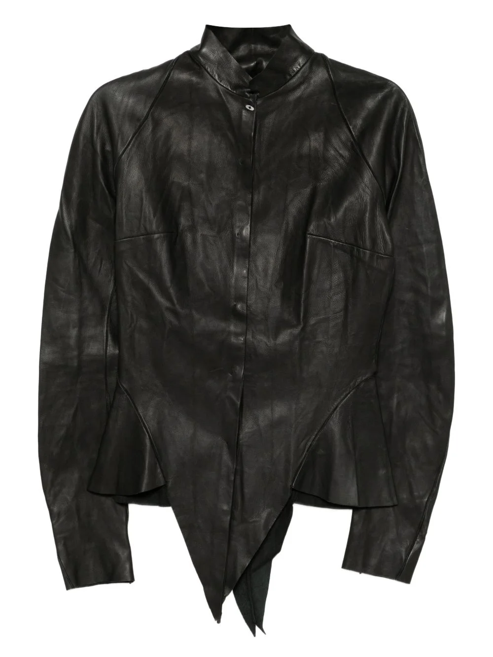 leather shirt Highlights - Black - Front button fastening - Asymmetric hem - Long sleeves Made in Italy Composition Calf Leather 100% SIZE & FIT Model measurements Height 5 ft 10 in(1.77 m) Bust/Chest 29.33 in(74.5 cm) Hips 32.28 in(82 cm) Waist 24.01 in(61 cm) FittingInformation Designed for a slim fit that sits just away from the body offering a close yet comfortable fit Soft leather has a supple and smooth construction offering some flexibility This piece fits small – take one size up Washing instructions Specialist Cleaning