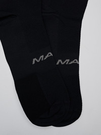The Drome Sock pairs durability with all-day comfort, featuring dynamic arch support and a padded toe. Breathable, moisture-wicking, and antimicrobial, it keeps feet fresh through every ride. Details - Moisture Wicking - Breathable - Antibacterial - Q-Skin® technology with inherent silver microparticles and permanent antimicrobial properties - Breathable, moisture wicking with high abrasion resistance - Dynamic arch support to shape to the curves of your foot for a secure fit - Soft mesh fabric at the top and sides for cooling ventilation where you need it most - Certified Standard 100 by Oeko Tex™ - 6 inch cuff length Specifications - Product Weight: 35g - Main Fabric Content: Q-skin®, 85% Polyamide, 15% Elastane - Temperature Range: 15-40 DEGREES - Riding Conditions: All - SKU: MAUSO251925_BLAK