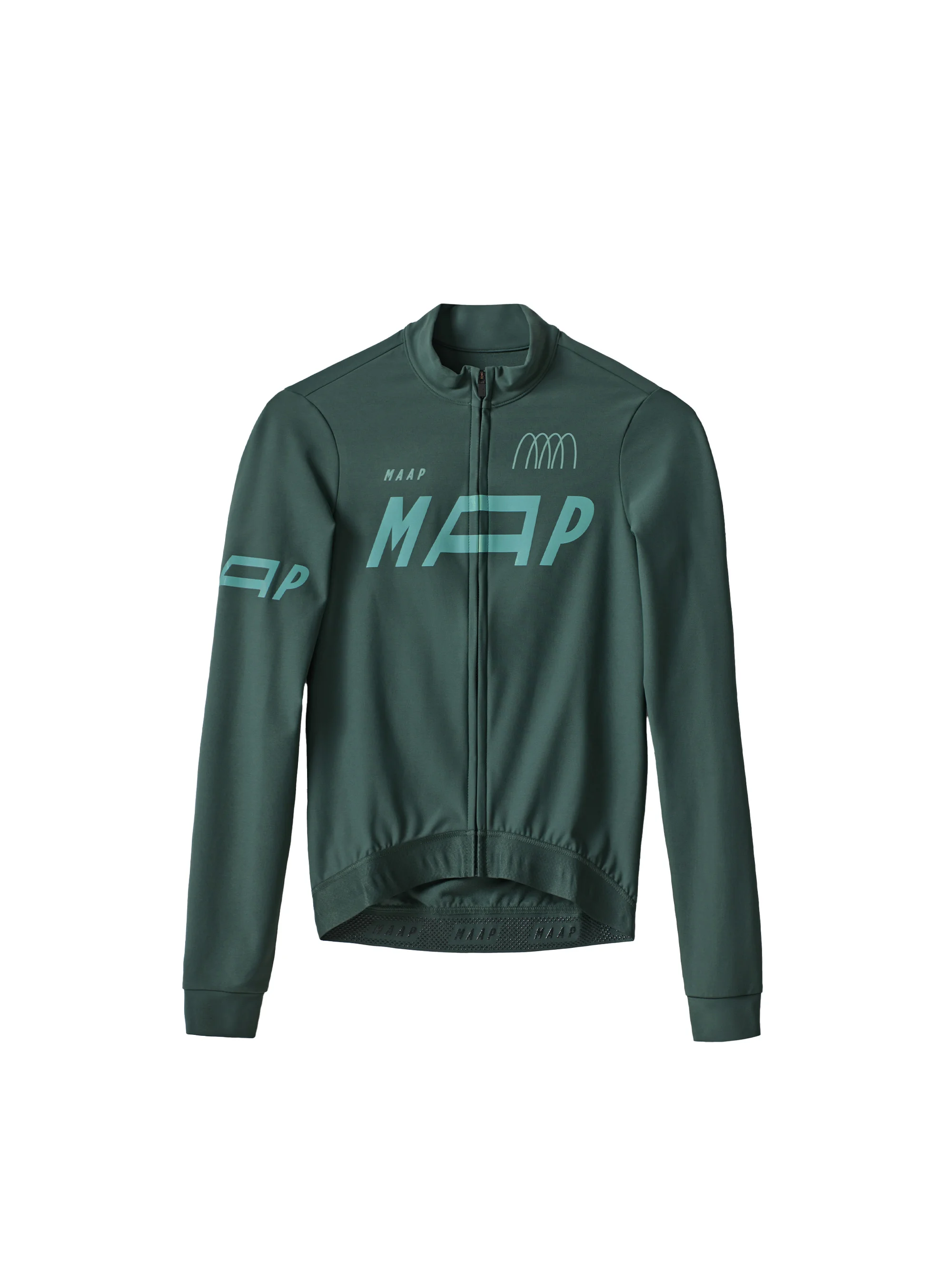 Introducing The Adapt Thermal LS Jersey, designed in our lower compression Core Fit style for a more relaxed profile. Matching ultra-soft recycled yarns with a softer, tailored cut for a jersey so comfortable, you'll want to wear it every ride. Moisture-wicking and breathable, the Adapt Thermal LS Jersey is ideal for big miles, hard efforts and everything in between. Details - Moisture Wicking - Breathable - Thermal Regulation - Italian Fabric - Premium Italian thermal fabric with superior softness - 3 back pockets with elasticated top - Back side zip stash pocket - Signature MAAP zip pulls - MAAP training graphics on front and back - Reflective logo details - YKK Vislon zip with lock system - UPF 50+ sun protection Specifications - Product Weight: 210 g - 7.41 oz - Main Fabric Content: 80% POLYAMIDE, 20% ELASTANE - Fit: Core - Temperature Range: 8-20 DEGREES - Riding Conditions: Cold - SKU: MAP-WAL166_ALG