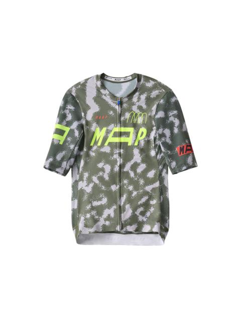 Adapt to testing race conditions with the Women's Adapted F.O. Pro Air Jersey. Created to celebrate Freddy Ovett's inclusion in the MAAP Privateers Program, the jersey is designed for speed with a contoured race fit. Featuring an all-new warp knit sleeve with carbon yarn technology that offers abrasion resistance and superior strength for taking on the cut-and-thrust of the peloton. Moisture-wicking and breathable micro-perforated materials on the chest, back and side panels provide optimal airflow when things heat up in the breakaway. Made with a majority of recycled yarns, the Women's Adapted F.O. Pro Air Jersey is ready for you to push the pace and perform at your peak. Details - Recycled Yarns - Moisture Wicking - Lightweight - Made with majority recycled yarns - Upgraded bonded front hem construction for reduced bulk and maximum stability - New warp-knit sleeves combine carbon yarn technology to provide added strength, abrasion resistance and thermoregulation - Micro-perforated, breathable and moisture-wicking fabrics - Elastic rear hem with internal silicone logo print - Low-profile internal rear pocket with zipper closure - Anti-sag back pockets - Low profile collar Specifications - Product Weight: 113 g - 4 oz - Main Fabric Content: 90% Polyester, 10% Elastane - Fit: Race - Temperature Range: 20-40 DEGREES - Riding Conditions: Hot - SKU: MAP-WAJ333_BLK