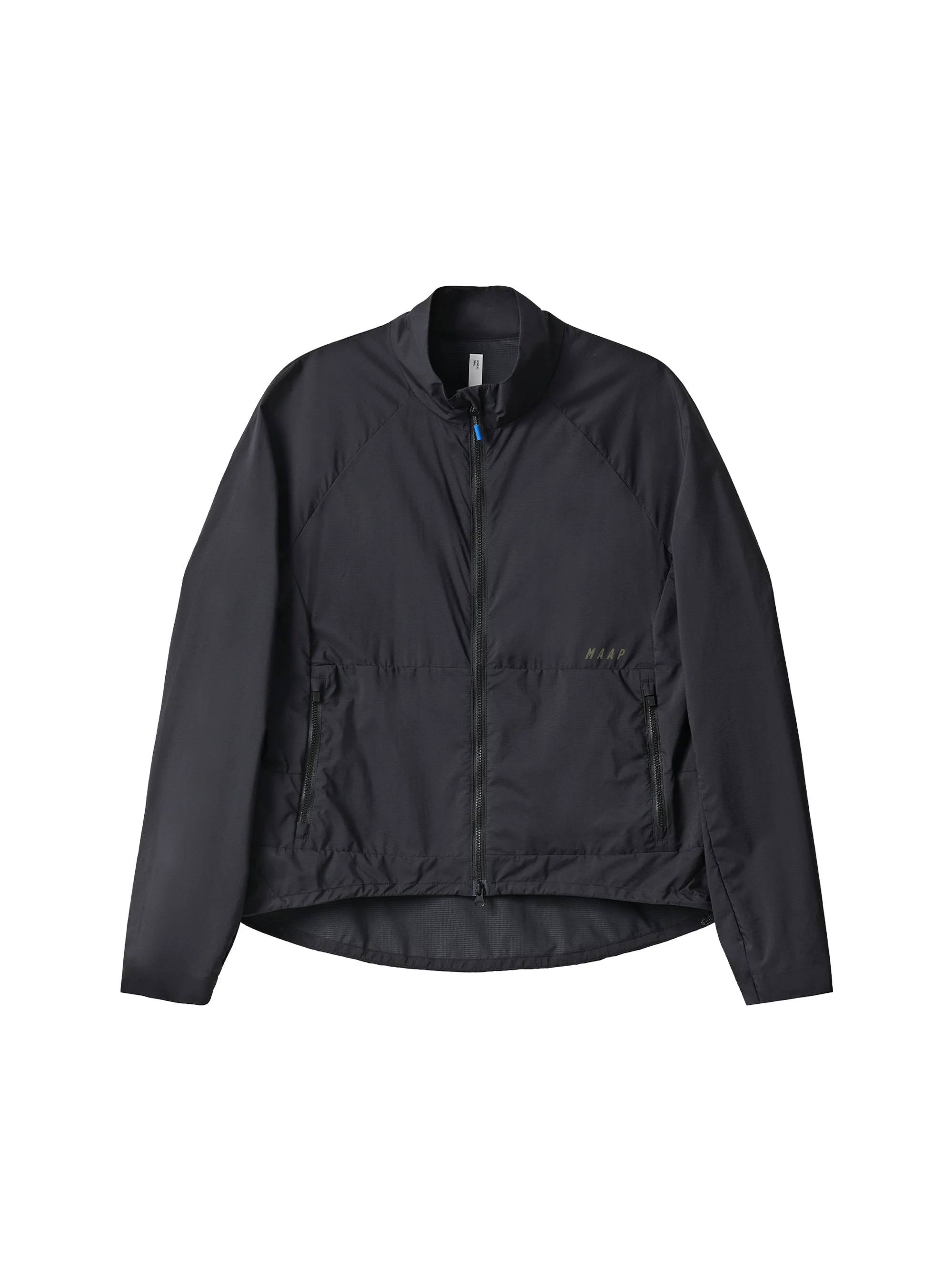 Withstand the elements with the Women's Alt_Road™ Wind Jacket. Windproof fabrics provide ultimate protection, while the slim profile and waist cinch lets you dial in your fit. Side pockets offer storage and a casual vibe when you're no longer pedalling. Details - Windproof - Lightweight - Packable Features - Optimising on-bike functionality and freedom of movement with a slim fit that doesn't compromise off-bike modesty. - The lightweight windproof Pertex® Equilibrium shell features a texturised back to enhance next-to-skin airflow. - Substantial secure storage is offered through two front zippered pockets. - Tune in your ideal fit with the adjustable cinch hem. - Protection from the elements in every detail with an elasticated cuff that sits deep on the wrist. - Warming up and need to delayer? Packs down quickly into the internal side pocket for an easy stash-and-go solution. - Extra visibility in low light conditions with reflective heat transfers and tabs. Specifications - Product Weight: 180 g - Main Fabric Content: 52% Recycled Nylon, 38% Nylon, 10% Polyester - Fit: Slim - Temperature Range: 6-16 DEGREES - Riding Conditions: Cold - SKU: MPWJA210324_BLAK