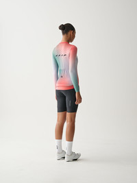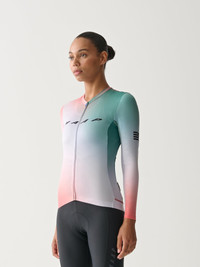 Embrace the adrenaline of maximum output with the Blurred Out Pro Hex Long Sleeve Jersey 2.0. Engineered with aero-optimised and high-airflow materials to keep you cool and feeling fast when chasing the high of peak power, QOM's or victory salutes. Breathe in, blur out, and find fresh focus. Details - Recycled Yarns - Compression Fabrics - Moisture Wicking - bluesign® APPROVED Fabric Features - High-compression MAAP jacquard woven sleeves deliver a close-to-skin fit, so you always look dialled. - A bonded front-hem construction reduces bulk for an elevated fit. - Micro-perforated pockets maximise airflow, while the elasticated edge provides stability for an anti-sag pocket. - Our signature Race Fit features a low profile collar, advanced sleeve fit and tailored panelling for a high-performance silhouette. Specifications - Product Weight: 180 g - Main Fabric Content: 44% RECYCLED POLYESTER, 38% POYLESTER, 15% ELASTANE, 3% RECYCLED ELASTANE - Fit: Race - Temperature Range: 18-35 DEGREES - Riding Conditions: Hot - SKU: MPWLS220424_FLMX