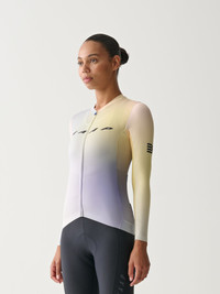 Embrace the adrenaline of maximum output with the Blurred Out Pro Hex Long Sleeve Jersey 2.0. Engineered with aero-optimised and high-airflow materials to keep you cool and feeling fast when chasing the high of peak power, QOM's or victory salutes. Breathe in, blur out, and find fresh focus. Details - Recycled Yarns - Compression Fabrics - Moisture Wicking - bluesign® APPROVED Fabric Features - High-compression MAAP jacquard woven sleeves deliver a close-to-skin fit, so you always look dialled. - A bonded front-hem construction reduces bulk for an elevated fit. - Micro-perforated pockets maximise airflow, while the elasticated edge provides stability for an anti-sag pocket. - Our signature Race Fit features a low profile collar, advanced sleeve fit and tailored panelling for a high-performance silhouette. Specifications - Product Weight: 180 g - Main Fabric Content: 44% RECYCLED POLYESTER, 38% POYLESTER, 15% ELASTANE, 3% RECYCLED ELASTANE - Fit: Race - Temperature Range: 18-35 DEGREES - Riding Conditions: Hot - SKU: MPWLS220424_SHLL