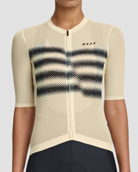 As the mercury rises and the racing heats up, reach for the Women's Blurred Out Ultralight Pro Jersey. Created for hot and humid conditions, this jersey is constructed from an innovative ultralight-weight fabric for maximum airflow and ultimate cooling, combined with moisture-wicking technology for a weightless feel. Designed in the Race-Fit style with a contoured cut and low-profile collar for a fast and sleek fit. The Women's Blurred Out Ultralight Pro Jersey is sustainably manufactured with the bluesign® SYSTEM. Details - Ultra-Lightweight - Moisture Wicking - Thermal Regulation - Breathable - Italian Fabric - Signature Race-Fit - Moisture-wicking technology - Italian-made fabrics - Modern, low-profile collar design - Fabrics sustainably manufactured with the bluesign® SYSTEM - Unidirectional (UD) stretch pockets to prevent sag - YKK vislon lock-zip for zip-unzip ease Specifications - Product Weight: 90 g - 3.17 oz - Main Fabric Content: 94% Polyester, 4% Elastane - Fit: Race - Temperature Range: 25-45 DEGREES - Riding Conditions: Hot - SKU: MAP-WAJ301_PTY