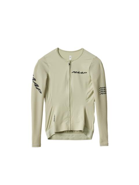 The Emerge Long Sleeve Jersey, where velocity meets versatility, delivers a compressive second-skin profile engineered to elevate everyday performance. Sustainably crafted with ultra-soft, moisture-wicking fabrics, it amplifies fit, form, and precision-comfort across tempo efforts, recovery spins, and everything in between. Details - Recycled Yarns - MAAP Honeycomb - Italian Fabric - bluesign® APPROVED Fabric - Moisture Wicking - Breathable - Reflective Graphics Features - Ultra-soft and recycled knitted Italian fabric across the main body offers comfort and performance without compromising MAAP’s commitment to sustainability. - Optimal shape, structure and breathability delivered with recycled honeycomb mesh sleeves. - The compressive, second-skin Race Fit paired with a low-profile collar elevates everyday performance. - An upgraded bonded shoulder construction reduces bulk for a refined, streamlined profile from the hoods to the drops. - Additional storage with a sleek and secure low-profile internal rear zip pocket. - Extra visibility in low light conditions with reflective print transfers and tabs. Specifications - Product Weight: 180g - Main Fabric Content: Main: 70% Recycled Nylon, 30% Elastane, Sleeves: 78% Recycled Nylon, 22% Elastane - Fit: Race - Temperature Range: 18 - 35 DEGREES - Riding Conditions: Hot - SKU: MPWLS252425_QKSN
