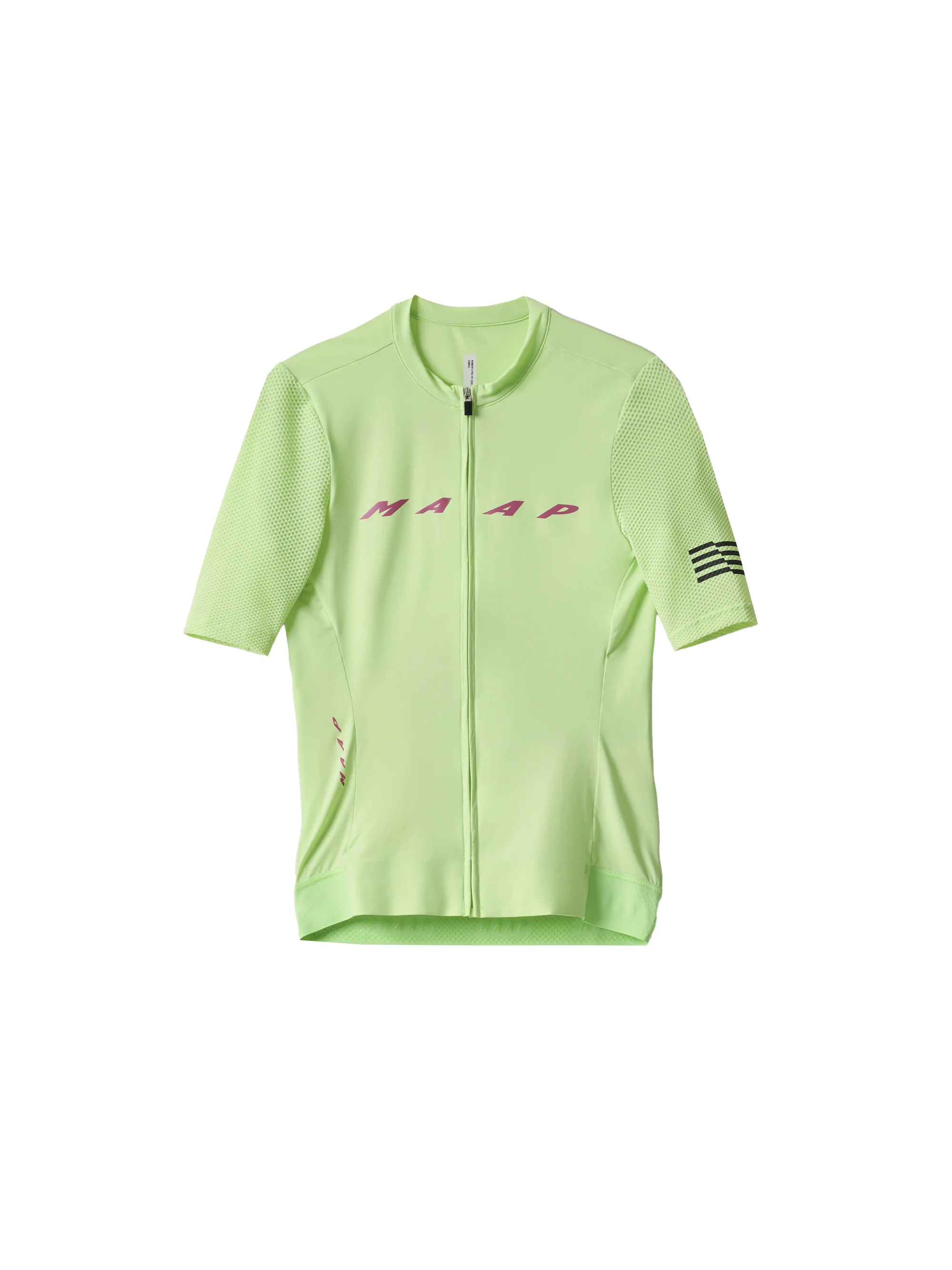 Our best-selling Women's Evade Pro Base Jersey 2.0 is made with sustainable materials and ultra-soft, moisture-wicking fabrics. Designed for a fit so comfortable, you'll forget you’re wearing it- even when the pace heats up. Details - Recycled Yarns - MAAP Honeycomb - Moisture Wicking - bluesign® APPROVED Fabric - Breathable - Reflective Graphics - Italian Fabric Features - The high-performance silhouette of our Race Fit features a longer sleeve length, low-profile collar and tailored panelling for speed and precision. - Advanced breathability achieved through premium recycled honeycomb mesh sleeves. - A bonded front-hem and rear pocket edge construction reduces bulk for an elevated fit. - A back side zip stash pocket keeps your cash, keys and other valuables secure. - Extra visibility in low light conditions with reflective print transfers and tabs. Specifications - Product Weight: 150 g - Main Fabric Content: MAIN BODY: 70% POLYAMIDE (RECYCLED), 30% ELASTANE, SLEEVES: 78% POLYAMIDE (RECYCLED), 22% ELASTANE - Fit: Race - Temperature Range: 18 - 35 DEGREES - Riding Conditions: Hot - SKU: MPWJE230925_MEAD