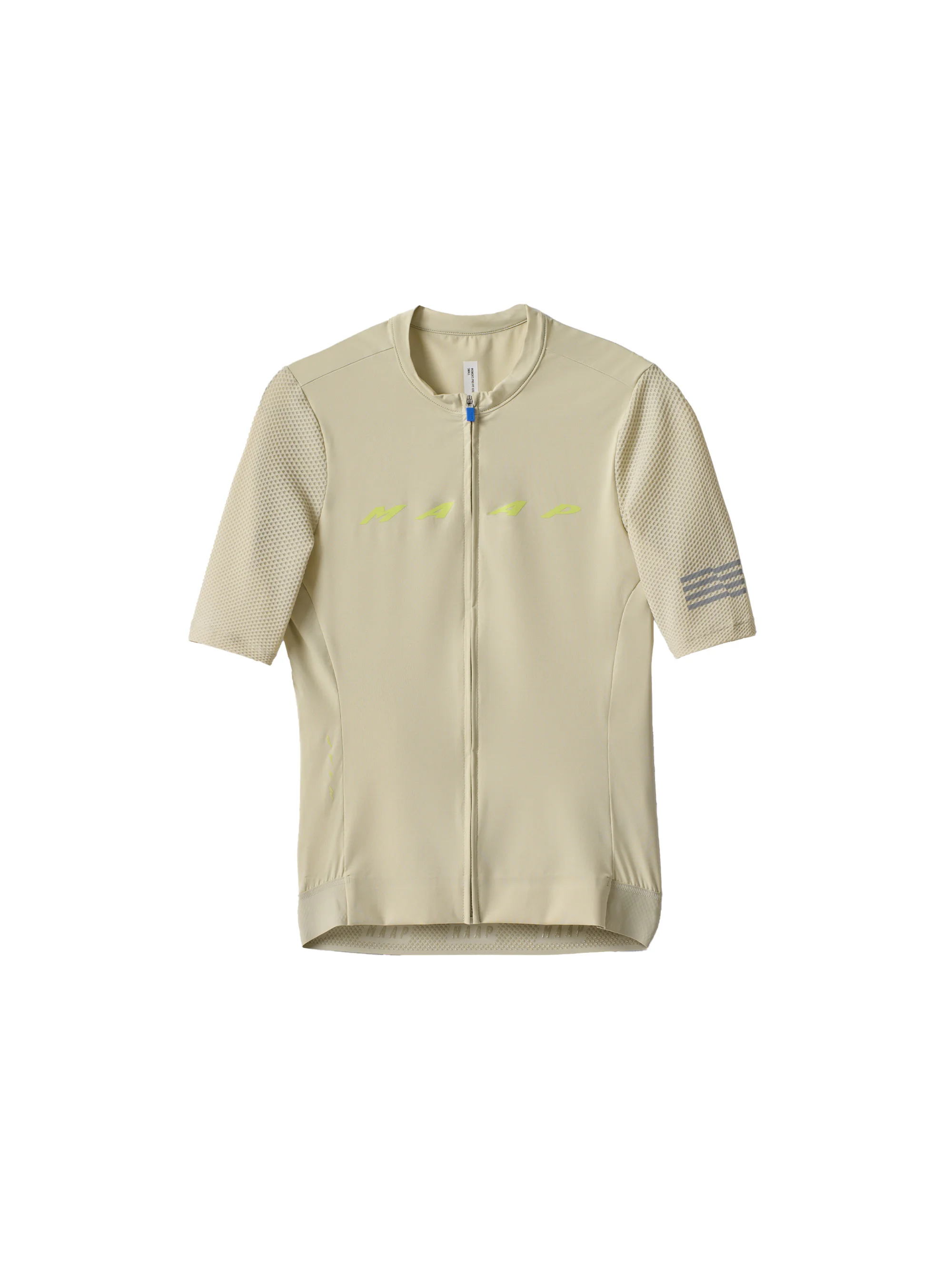 Our best-selling jersey keeps getting better. The Women's Evade Pro Base Jersey 2.0 has been re-imagined with a range of sustainable materials and fresh design details for a jersey that fits so well you'll forget you're wearing it. Ultra-soft fabrics paired with advanced moisture-wicking technology keep you cool and dry even when the pace is on. Details - Recycled Yarns - MAAP Honeycomb - MAAP Honeycomb - bluesign® APPROVED Fabric - Breathable Features - The signature Race Fit features a longer sleeve length, low profile collar and tailored panelling for a high-performance silhouette - Recycled dyed honeycomb mesh sleeves provide advanced breathability - A bonded front-hem and rear pocket edge construction reduces bulk for an elevated fit - A back side zip stash pocket keeps your cash, keys and other valuables secure - Reflective print transfers and tabs for extra visibility in low light conditions Specifications - Product Weight: 135 g - 4.76 oz - Main Fabric Content: Main Body: 70% Polyamide (Recycled), 30% Elastane, Sleeves: 78% Polyamide (Recycled), 22% Elastane - Fit: Race - Temperature Range: 18-35 DEGREES - Riding Conditions: Hot - SKU: MPWJE230924_DUNE