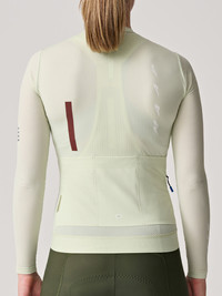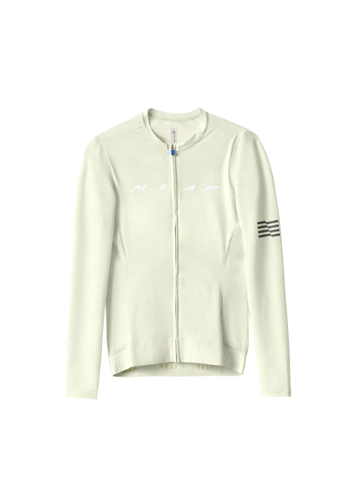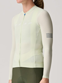 Our best-selling long-sleeve jersey keeps getting better. The Women's Evade Pro Base Long Sleeve Jersey 2.0 has been re-imagined with a range of sustainable materials and fresh design details for a jersey that fits so well you'll forget you're wearing it. Ultra-soft fabrics paired with advanced moisture-wicking technology keep you cool and dry even when the pace is on. Details - Recycled Yarns - MAAP Honeycomb - Moisture Wicking - bluesign® APPROVED Fabric - Breathable Features - Our signature Race Fit features a low profile collar, advanced sleeve fit and tailored panelling for a high-performance silhouette - Recycled dyed honeycomb mesh sleeves provide advanced breathability - A bonded front-hem and rear pocket edge construction reduces bulk for an elevated fit - The back side zip stash pocket keeps your cash, keys and other valuables secure - Reflective print transfers and tabs for extra visibility in low light conditions Specifications - Product Weight: 155 g - 5.47 oz - Main Fabric Content: Main Body: 70% Polyamide (Recycled), 30% Elastane, Sleeves: 78% Polyamide (Recycled), 22% Elastane - Fit: Race - Temperature Range: 18-35 DEGREES - Riding Conditions: Hot - SKU: MAP-WAL137_DEW