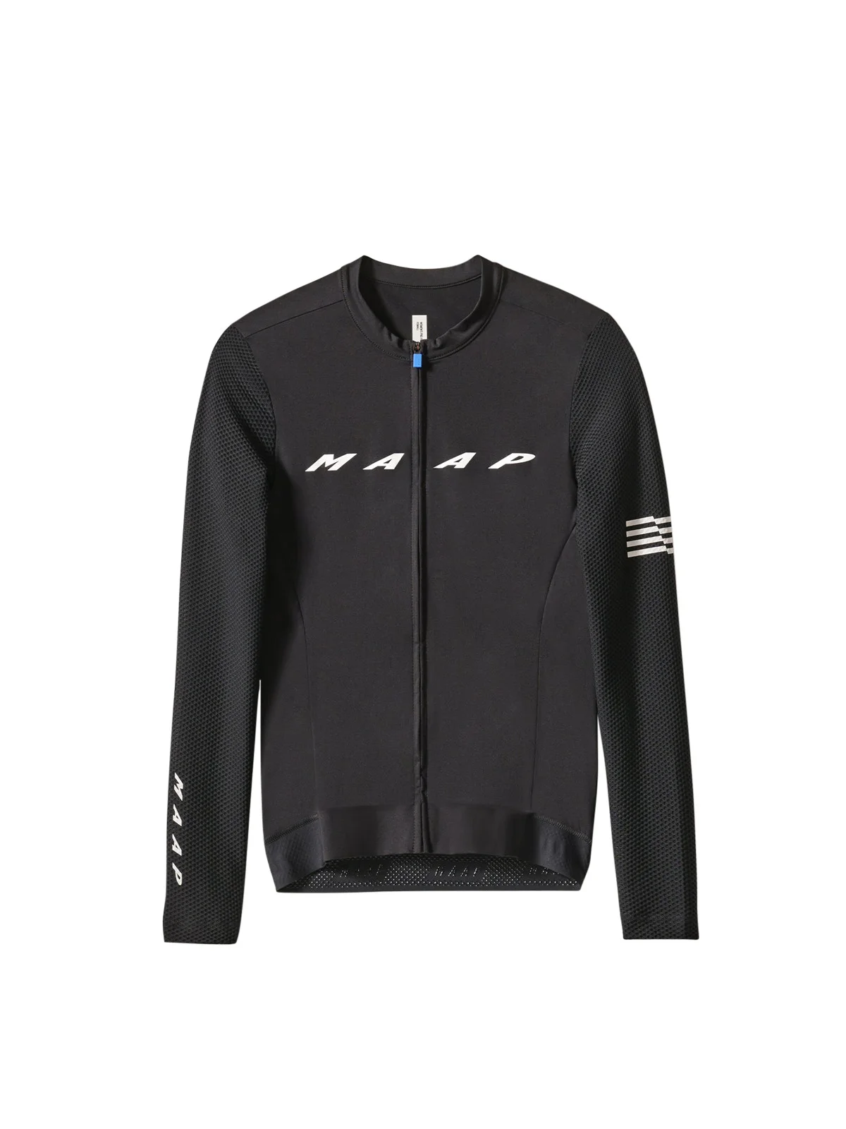 Our best-selling long-sleeve jersey keeps getting better. The Women's Evade Pro Base Long Sleeve Jersey 2.0 has been re-imagined with a range of sustainable materials and fresh design details for a jersey that fits so well you'll forget you're wearing it. Ultra-soft fabrics paired with advanced moisture-wicking technology keep you cool and dry even when the pace is on. Details - Recycled Yarns - MAAP Honeycomb - Moisture Wicking - bluesign® APPROVED Fabric - Breathable Features - Our signature Race Fit features a low profile collar, advanced sleeve fit and tailored panelling for a high-performance silhouette - Recycled dyed honeycomb mesh sleeves provide advanced breathability - A bonded front-hem and rear pocket edge construction reduces bulk for an elevated fit - The back side zip stash pocket keeps your cash, keys and other valuables secure - Reflective print transfers and tabs for extra visibility in low light conditions Specifications - Product Weight: 155 g - 5.47 oz - Main Fabric Content: MAIN BODY: 70% POLYAMIDE (RECYCLED), 30% ELASTANE, SLEEVES: 78% POLYAMIDE (RECYCLED), 22% ELASTANE - Fit: Race - Temperature Range: 18-35 DEGREES - Riding Conditions: Hot - SKU: MAP-WAL119_BLK