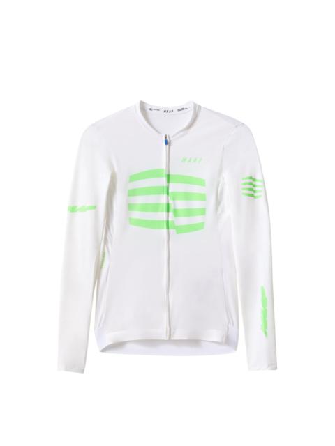 As the temperature drops, reach for the Women's Evade Thermal Long Sleeve Jersey 2.0. The super soft Italian fabrics feel lush against the skin and feature performance benefits of warmth retention, moisture-wicking and breathable technology. The Women's Evade Thermal Long Sleeve Jersey 2.0 is everything you've been looking for. Details - Thermal Regulation - Moisture Wicking - bluesign® APPROVED Fabric Features - Our signature Race Fit features a low profile collar, advanced sleeve fit and tailored panelling for a high-performance silhouette - The brushed fleece-lined fabric offers a super soft skin feel, while a water-repellant DWR coating keeps light moisture at bay - A bonded front-hem and rear pocket edge construction reduces bulk for an elevated fit - The back side zip stash pocket keeps your cash, keys and other valuables secure - Reflective print transfers and tabs for extra visibility in low light conditions Specifications - Product Weight: 250 g - 8.82 oz - Main Fabric Content: MAIN BODY: 70% POLYAMIDE (RECYCLED), 30% ELASTANE, SLEEVES: 78% POLYAMIDE (RECYCLED), 22% ELASTANE - Fit: Core - Temperature Range: 6 - 16 DEGREES - Riding Conditions: Cold - SKU: MAP-WAL121_BLK