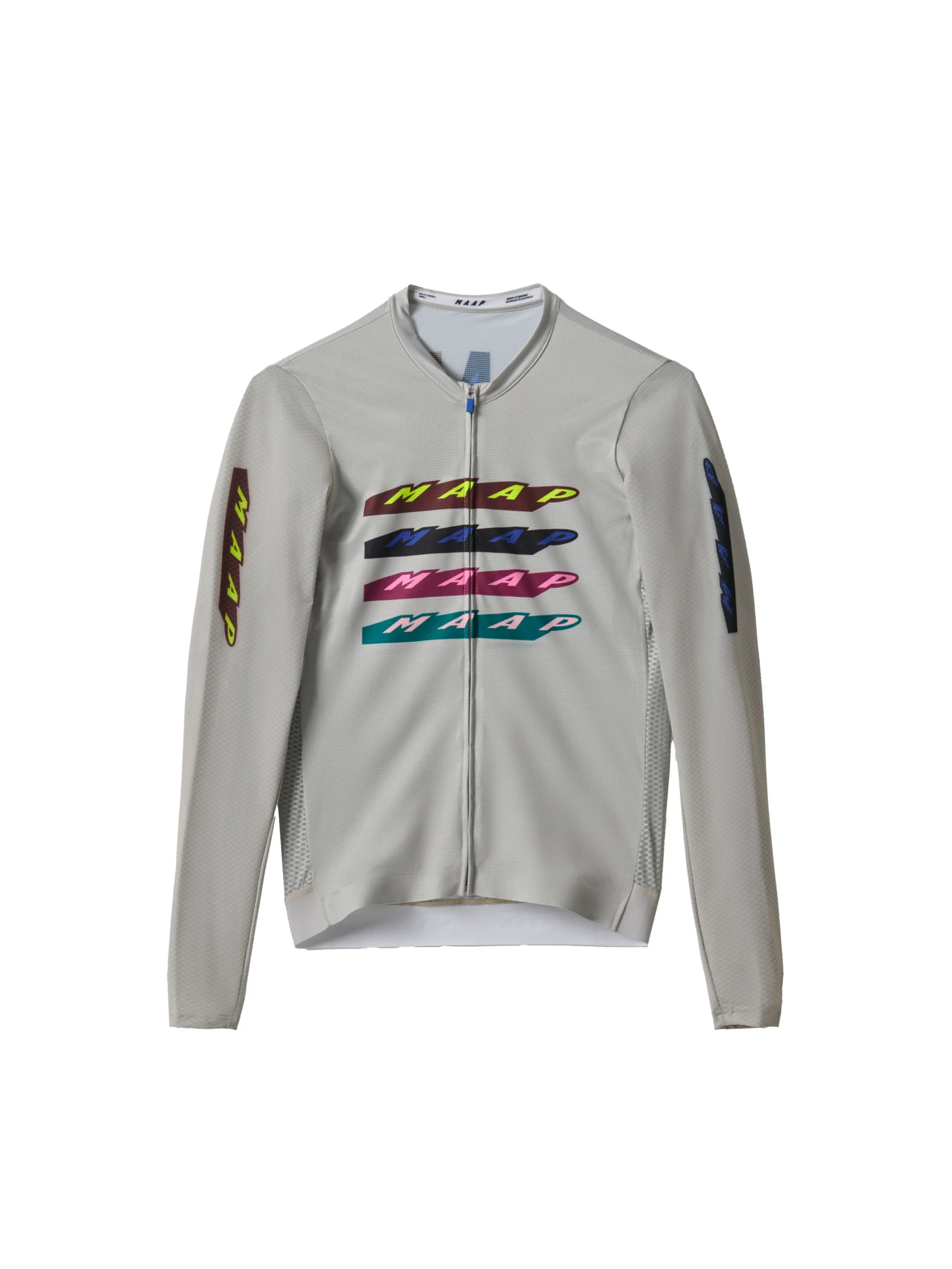 Meet the Women's Evade X Pro Air Long Sleeve Jersey 2.0. Merging ultra-lightweight, performance-driven materials of our Pro Air Jersey and emblazoning it with an Evade-style emblem. Advanced cooling and moisture-wicking technology keeps you at peak speed during intense efforts. Details - Recycled Yarns - Moisture Wicking - Lightweight Features - The high-performance silhouette of our signature Race Fit features advanced sleeve fit, low-profile collar and tailored panelling for speed and precision. - Optimal airflow in warmer conditions with micro-perforated fabrics engineered with majority recycled yarns. - Advanced strength and enhanced comfort combine with the carbon yarn warp-knit sleeve. - No bulk and an elevated fit from the bonded front hem construction. - Keeping the jersey securely in place is an elasticated rear hem with an internal silicone logo print. Specifications - Product Weight: 180 g - Main Fabric Content: 90% Polyester, 10% Elastane - Fit: Race - Temperature Range: 23 - 40 DEGREES - Riding Conditions: Hot - SKU: MPWLS240924_FOG1
