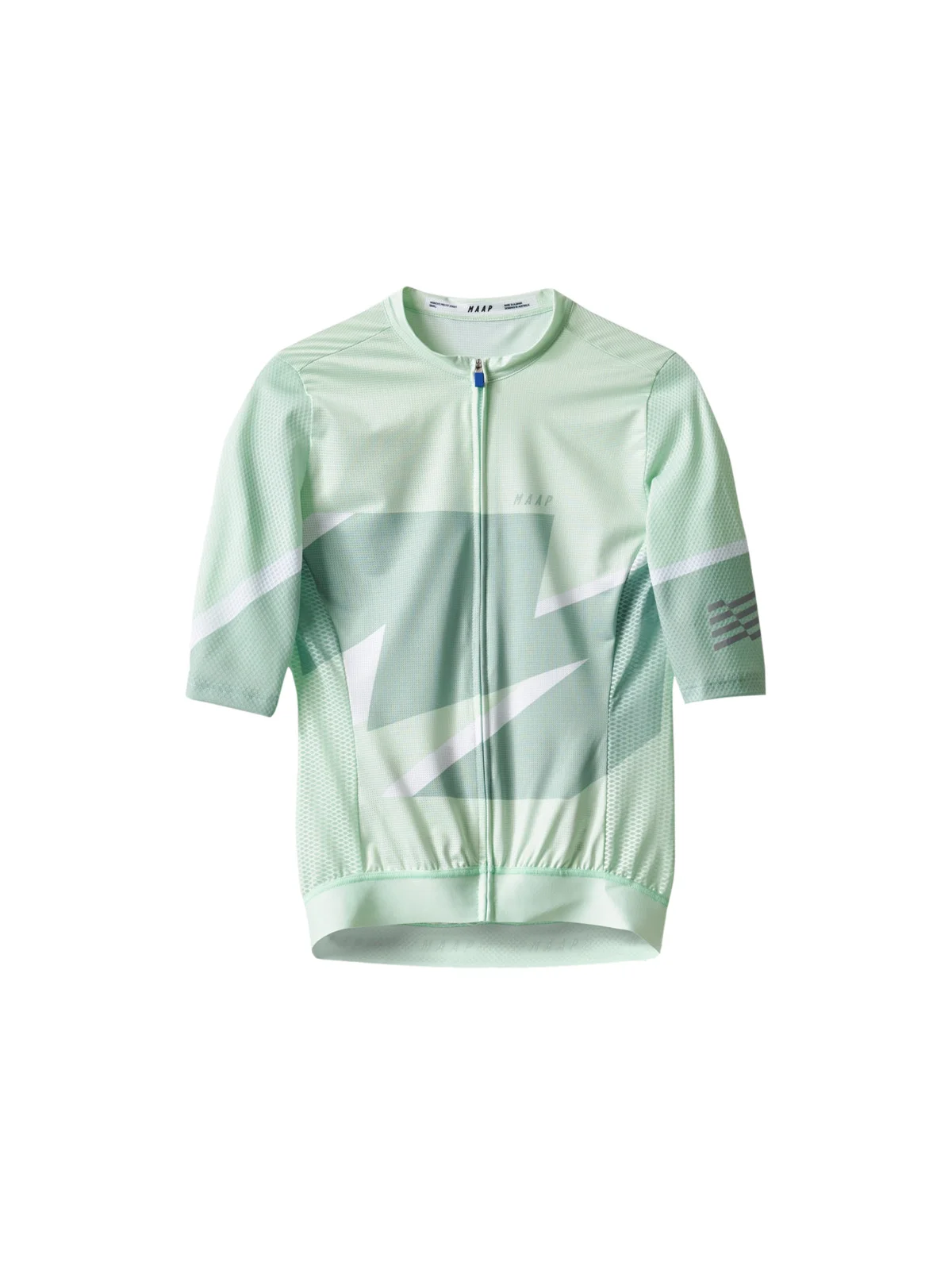 The Women's Evolve 3D Pro Air Jersey is high-performance, lightweight jersey featuring bold graphic elements and sustainable materials for the ultimate experience. Design in our signature Race-Fit with a women's specific contoured fit, a low profile collar and longer sleeve length for comfort and performance. Featuring ultra-lightweight mesh side panels, micro-perforated chest and back panels, and air-mesh sleeves for maximum airflow. The lazer cut perforated pockets offer added breathability and moisture-wicking technology to keep you fresh. The material selection includes mostly recycled yarns, OEKO-TEX® certified hem and bluesign® APPROVED fabrications. Details - Recycled Yarns - Moisture Wicking - Lightweight - Signature Race-Fit - Made with majority recycled yarns - Moisture-wicking technology - Air-mesh sleeve fabric and longer sleeve length - Smart micro perforation across the chest and back panels - Ultra-light large-scale mesh across the side panels - Laser-cut and perforated stretch pockets for added breathability - Exposed YKK Vislon zip with lock-zip puller - UPF 50+ sun protection factor - bluesign® APPROVED fabrications - Elastic hem band OEKO-TEX® certified Specifications - Product Weight: 130 g - 4.59 oz - Main Fabric Content: 90% Polyester, 10% Elastane - Fit: Race - Temperature Range: 20-40 DEGREES - Riding Conditions: Hot - SKU: MAP-WAJ227_PJDE