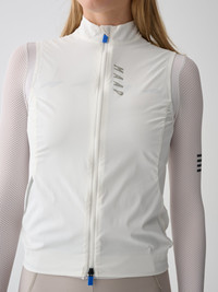 The super lightweight, wind-resistant Women's Flow Vest peaks in changing conditions. With strategic panelling and laser-cut ventilation for protection, breathability and optimal fit, it’s easily stashable, whether ripping descents or climbing to new heights. Details - Windproof - Lightweight - Packable Features - Wind-blocking ripstop materials provide protection where you need it most. - Optimal breathability with air-permeable ripstop side panels ensures temperature regulation for uncompromised performance. - Extra ventilation and cooling from laser-cut perforated rear panelling. - No bulk, reduced weight and uncompromised comfort with low-profile bonded elasticated armhole and hem. - Dial in your airflow needs and easily access your pockets with the 2-way YKK zip with camlock puller. Specifications - Product Weight: 80 g - Main Fabric Content: 89% Polyamide 11% Elastane - Fit: Core - Temperature Range: 8 - 20 DEGREES - Riding Conditions: Wind - SKU: MPWVE240124_WHIT