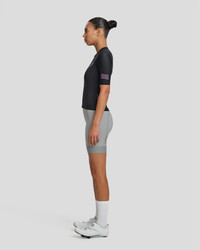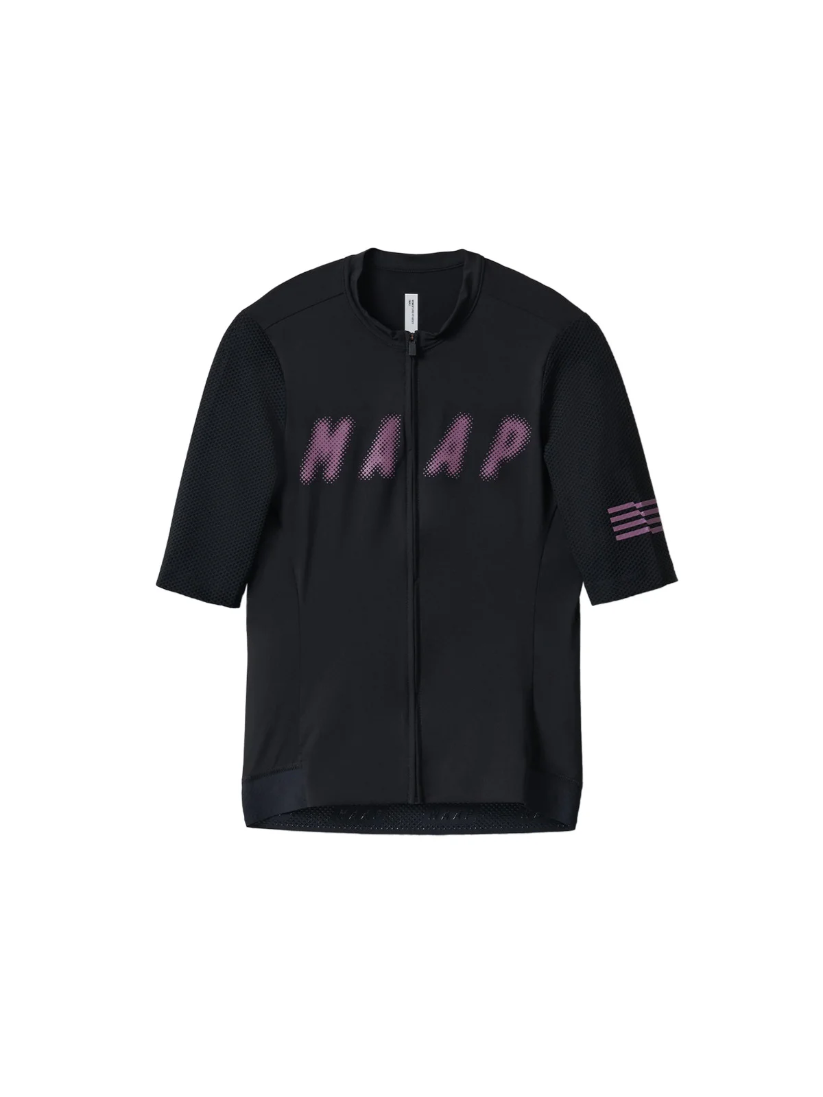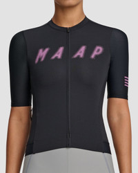 Blur the line between comfort and performance with the Women's Halftone Pro Base Jersey. This Race-Fit jersey features contoured panelling, a longer sleeve length, and a low-profile collar for a fast and sleek fit. The ultra-soft knitted Italian fabric and honeycomb mesh sleeve offer premium comfort for pushing the pedals from dawn til dusk. The wide bonded front hem with silicon gripper keeps the jersey securely in place, while anti-sag pockets and an additional internal rear pocket offer ample storage. The Women's Halftone Pro Base Jersey is ready to go the distance. Details - Recycled Yarns - Moisture Wicking - Breathable Features - Recycled dyed honeycomb mesh sleeves provide advanced breathability - Details matter, the YKK zip features a locking tab mechanism to ensure no sliding zippers - Micro-perforated pockets maximise airflow, while the elasticated edge provides stability for an anti-sag pocket Specifications - Product Weight: 135 g - 4.76 oz - Main Fabric Content: Main Body: 70% Polyamide (Recycled), 30% Elastane, Sleeves: 78% Polyamide (Recycled), 22% Elastane - Fit: Race - Temperature Range: 18-35 DEGREES - Riding Conditions: Hot - SKU: MAP-WAJ299_BLK