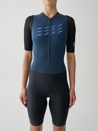 The new Women's Pro Race Suit fuses performance-proven engineering from Team Bib Evo and Pro Base Jerseys in a race-optimised construction. Built for speed and endurance with uncompromised technical functionality, the fit ensures peak comfort—whether pushing the pace on race day or settling into extended high-tempo efforts. Details - Recycled Yarns - MAAP Honeycomb - Moisture Wicking - Breathable - 4 Way Stretch Features - Race hard with no ride-up—keep the fit locked in with a seamless raw-cut leg hem and a silicone gripper for enhanced traction. - Compact dual rear pockets store race-day essentials while maintaining minimal bulk and a streamlined profile. - Amp up ventilation for quick cooling airflow and ensure easy dressing with a one-way zipper. - The advanced materials package with majority recycled yarns in the main body and sleeve fabric enhances moisture wicking and cooling during intense race efforts. Specifications - Product Weight: 300 g - Main Fabric Content: MAIN BODY - 70% Recycled Nylon, 30% Elastane, SLEEVES - 78% Recycled Nylon, 22% Elastane, LEGS - 80% Nylon, 20% Elastane - Fit: Race - Temperature Range: 18 - 35 DEGREES - Riding Conditions: Hot - SKU: MPWSK240224_MDNB