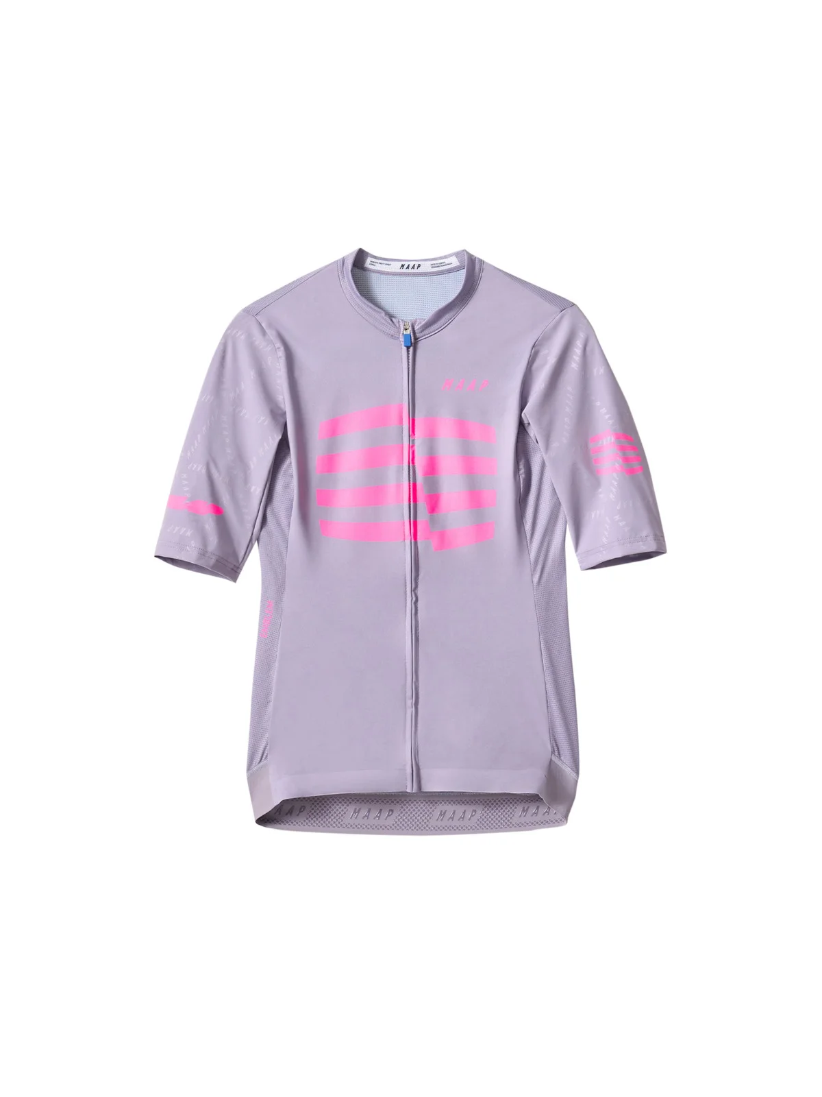 The Women's Sphere Pro Hex Jersey 2.0 is designed to perform on your longest training days and hardest race days. The Race-Fit style features a longer sleeve length, contoured panelling and a low-profile collar that offers all-day comfort and a high-performance fit. Made from a majority of recycled yarns, the Women's Sphere Pro Hex Jersey 2.0 features an exclusive MAAP hex-tech sleeve for aero optimisation alongside breathable micro-perforated fabric on the back and side panels. Featuring an upgraded bonded front hem and larger pockets with anti-sag material, the Women's Sphere Pro Hex Jersey 2.0 is ready to ride. Details - Recycled Yarns - Compression Fabrics - Moisture Wicking - Made with majority recycled yarns - Upgraded bonded front-hem construction - Signature Race-Fit with woven exclusive MAAP Hex-tech sleeve technology - Micro-perforated breathable fabric for the back panel, side panels, and collar - Moisture-wicking technology - Longer sleeve length with twin-needle sleeve hem - Larger back pockets with breathable anti-sag fabric - Single-layer lightweight elastic hem with internal silicone print - YKK zip with lock-zip puller - Fabrics sustainably manufactured with the bluesign® SYSTEM - Elastic hem band OEKO-TEX® certified Specifications - Product Weight: 117 g - 4.13 oz - Main Fabric Content: Front Panel: 85% RECYCLED POLYESTER 15% RECYCLED ELASTANE, Rear Panel: 90% RECYCLED POLYESTER 10% RECYCLED ELASTANE, Sleeve: 75% POLYESTER 25% ELASTANE - Fit: Race - Temperature Range: 18-35 DEGREES - Riding Conditions: Hot - SKU: MAP-WAJ273_PASH