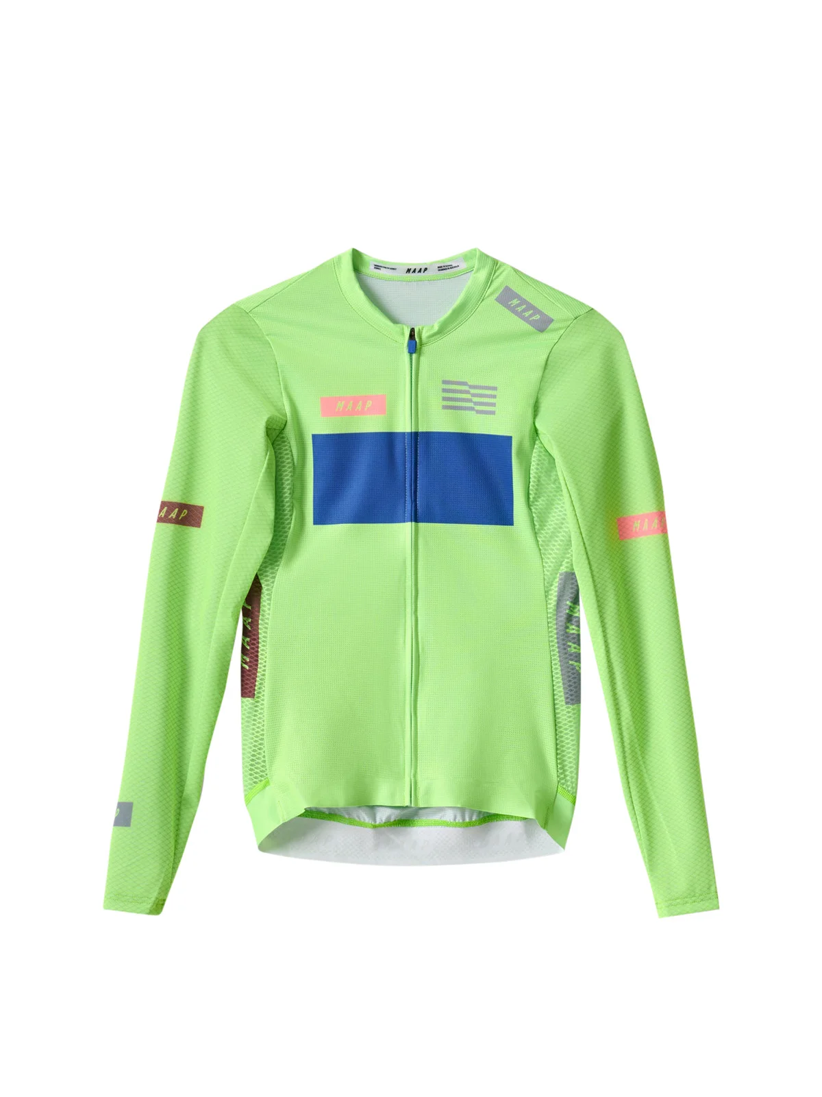 The Women's System Pro Air Long Sleeve Jersey is an ultra-lightweight, performance-driven jersey that combines moisture-wicking technology with breathable fabrics. Engineered to regulate body temperature, maximise airflow and optimise cooling to ensure performance and comfort is always dialled, even when the temperature and tempo are rising. Details - Recycled Yarns - Moisture Wicking - Lightweight Features - Warp-knit sleeves combined with carbon yarn technology provide advanced strength and advanced comfort - Details matter, the YKK zip features a locking tab mechanism to ensure no sliding zippers - The back side zip stash pocket keeps your cash, keys and other valuables secure Specifications - Product Weight: 121 g - 4.27 oz - Main Fabric Content: 90% Polyester, 10% Elastane - Fit: Race - Temperature Range: 20-40 DEGREES - Riding Conditions: Hot - SKU: MAP-WAL158_GLW