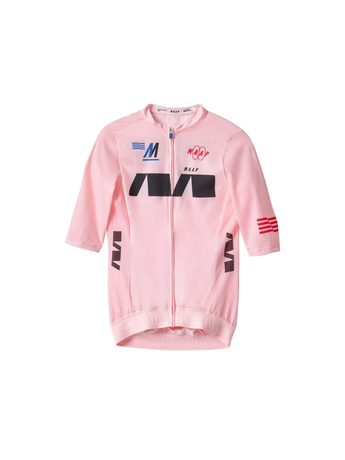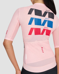 The Women's Trace Pro Air Jersey is a summer weight jersey that pairs performance and sustainability without compromise. Designed in our signature Race Fit, it features a longer sleeve length, low profile collar and a contoured women's specific cut for a performance fit. In addition, the ultra-lightweight mesh side panels, micro-perforated front and back panels, and air-mesh sleeves provide maximum breathability and moisture-wicking technologies to keep you cool and dry. All while being made from a majority of recycled yarns, bluesign® APPROVED fabrications, and OEKO-TEX® certified materials. The Women's Trace Pro Air Jersey is prime for all-day summer cycling. Details - Recycled Yarns - Moisture Wicking - Lightweight - Signature Race-Fit - Made with majority recycled yarns - Moisture-wicking technology - Air-mesh sleeve fabric and longer sleeve length - Smart micro perforation across the chest and back panels - Ultra-light large-scale mesh across the side panels - Laser-cut and perforated stretch pockets for added breathability - Exposed YKK Vislon zip with lock-zip puller - bluesign® APPROVED fabrications - Elastic hem band OEKO-TEX® certified Specifications - Product Weight: 113 g - 4 oz - Main Fabric Content: 90% Polyester, 10% Elastane - Fit: Race - Temperature Range: 20-40 DEGREES - Riding Conditions: Hot - SKU: MAP-WAJ271_PPNK