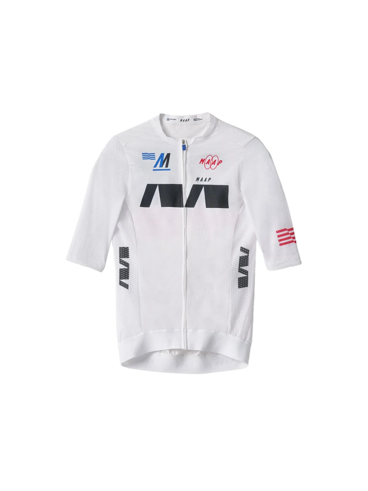 The Women's Trace Pro Air Jersey is a summer weight jersey that pairs performance and sustainability without compromise. Designed in our signature Race Fit, it features a longer sleeve length, low profile collar and a contoured women's specific cut for a performance fit. In addition, the ultra-lightweight mesh side panels, micro-perforated front and back panels, and air-mesh sleeves provide maximum breathability and moisture-wicking technologies to keep you cool and dry. All while being made from a majority of recycled yarns, bluesign® APPROVED fabrications, and OEKO-TEX® certified materials. The Women's Trace Pro Air Jersey is prime for all-day summer cycling. Details - Recycled Yarns - Moisture Wicking - Lightweight - Signature Race-Fit - Made with majority recycled yarns - Moisture-wicking technology - Air-mesh sleeve fabric and longer sleeve length - Smart micro perforation across the chest and back panels - Ultra-light large-scale mesh across the side panels - Laser-cut and perforated stretch pockets for added breathability - Exposed YKK Vislon zip with lock-zip puller - bluesign® APPROVED fabrications - Elastic hem band OEKO-TEX® certified Specifications - Product Weight: 113 g - 4 oz - Main Fabric Content: 90% Polyester, 10% Elastane - Fit: Race - Temperature Range: 20-40 DEGREES - Riding Conditions: Hot - SKU: MAP-WAJ216_WHT