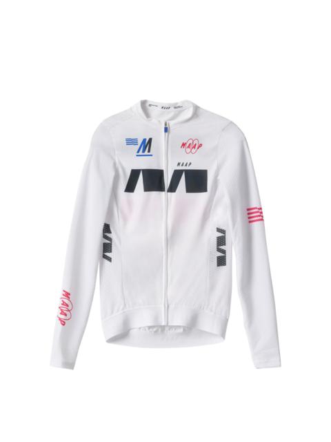 When the temperature starts to ramp up, the Women's Trace Pro Air Long Sleeve Jersey comes into its own. A lightweight summer jersey with long air mesh sleeves, ultra-lightweight mesh sides and micro-perforated front and back panels that provide maximum airflow and cooling. Designed in our signature Race Fit with a low profile collar and women's specific contoured fit that delivers performance and all-day comfort. The Women's Trace Pro Air Long Sleeve Jersey is made from a majority of recycled yarns, bluesign® approved fabrication methods, and OEKO-TEX® certified hem band. A jersey that looks after you and the planet. Details - Recycled Yarns - Moisture Wicking - Breathable - Italian Fabric - Signature Race-Fit - Made with majority recycled yarns - Moisture-wicking technology - Air-mesh sleeve fabric and longer sleeve length - Smart micro perforation across the chest and back panels - Ultra-light large-scale mesh across the side panels - Laser-cut and perforated stretch pockets for added breathability - Exposed YKK Vislon zip with lock-zip puller - bluesign® APPROVED fabrications - Elastic hem band OEKO-TEX® certified Specifications - Product Weight: 121 g - 4.27 oz - Main Fabric Content: 90% Polyester, 10% Elastane - Fit: Race - Temperature Range: 20-40 DEGREES - Riding Conditions: Hot - SKU: MAP-WAL115_WHT