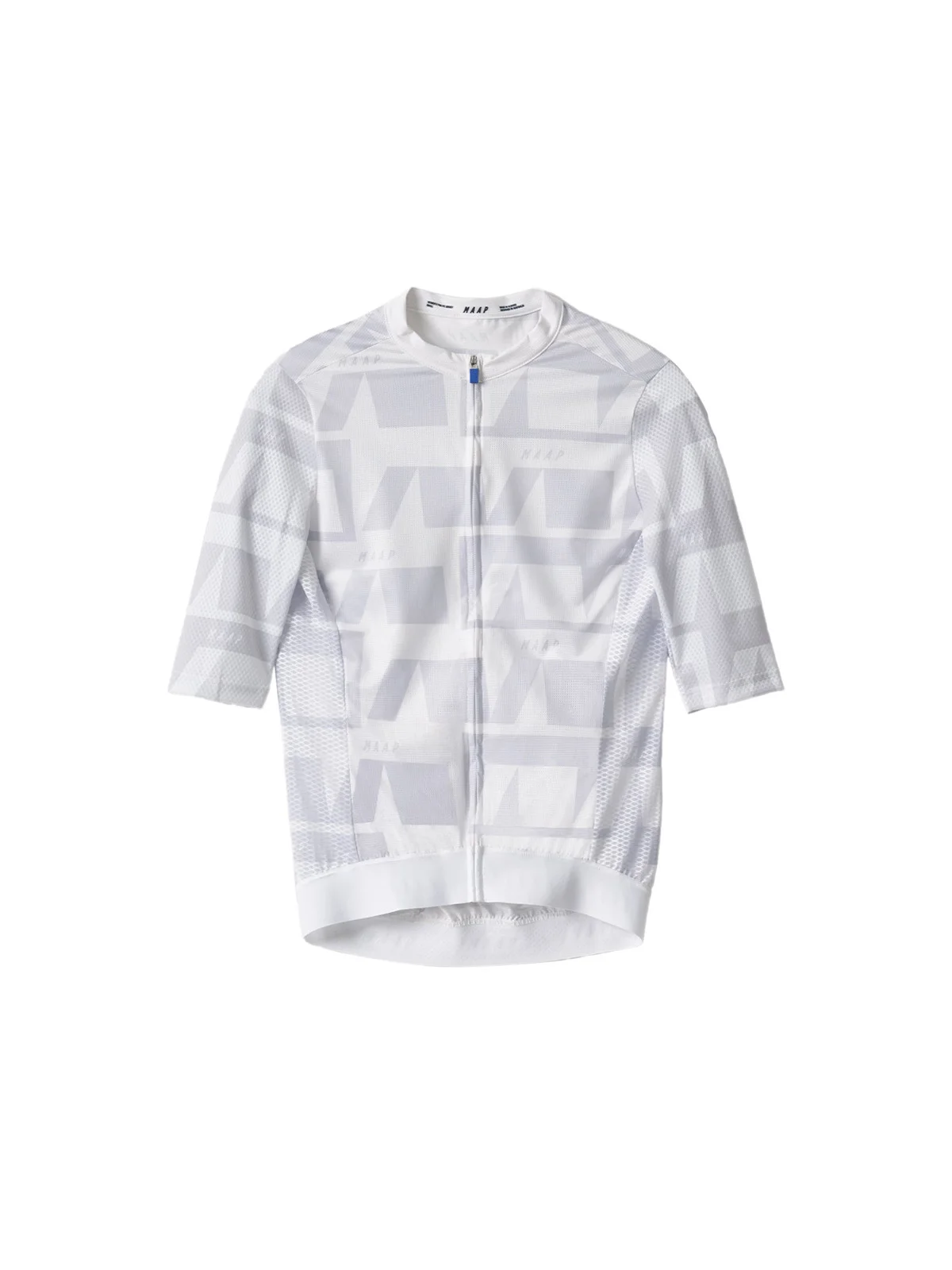 Meet the Women's Transfer Pro Air Jersey, your favourite summer weight jersey with understated graphic detail. Constructed with a sustainable material selection including a majority of recycled yarns with OEKO-TEX® certified hem, in addition to bluesign® APPROVED fabrications. Made from lightweight materials, the Women's Transfer Pro Air Jersey has ultra-lightweight mesh side panels, micro-perforated front and back panels, and air-mesh sleeves for maximum airflow. Featuring lazer cut perforated pockets for added breathability, moisture-wicking technology to keep you fresh and dry. Designed in our signature ProFit with a low profile collar, longer sleeve length and a contoured fit for all-day comfort and style. Details - Recycled Yarns - Moisture Wicking - Lightweight - Signature Race-Fit - Made with majority recycled yarns - Moisture-wicking technology - Air-mesh sleeve fabric and longer sleeve length - Smart micro perforation across the chest and back panels - Ultra-light large-scale mesh across the side panels - Laser-cut and perforated stretch pockets for added breathability - Exposed YKK Vislon zip with lock-zip puller - bluesign® APPROVED fabrications - Elastic hem band OEKO-TEX® certified Specifications - Product Weight: 113 g - 4 oz - Main Fabric Content: 90% Polyester, 10% Elastane - Fit: Race - Temperature Range: 20-40 DEGREES - Riding Conditions: Hot - SKU: MAP-WAJ217_WHT