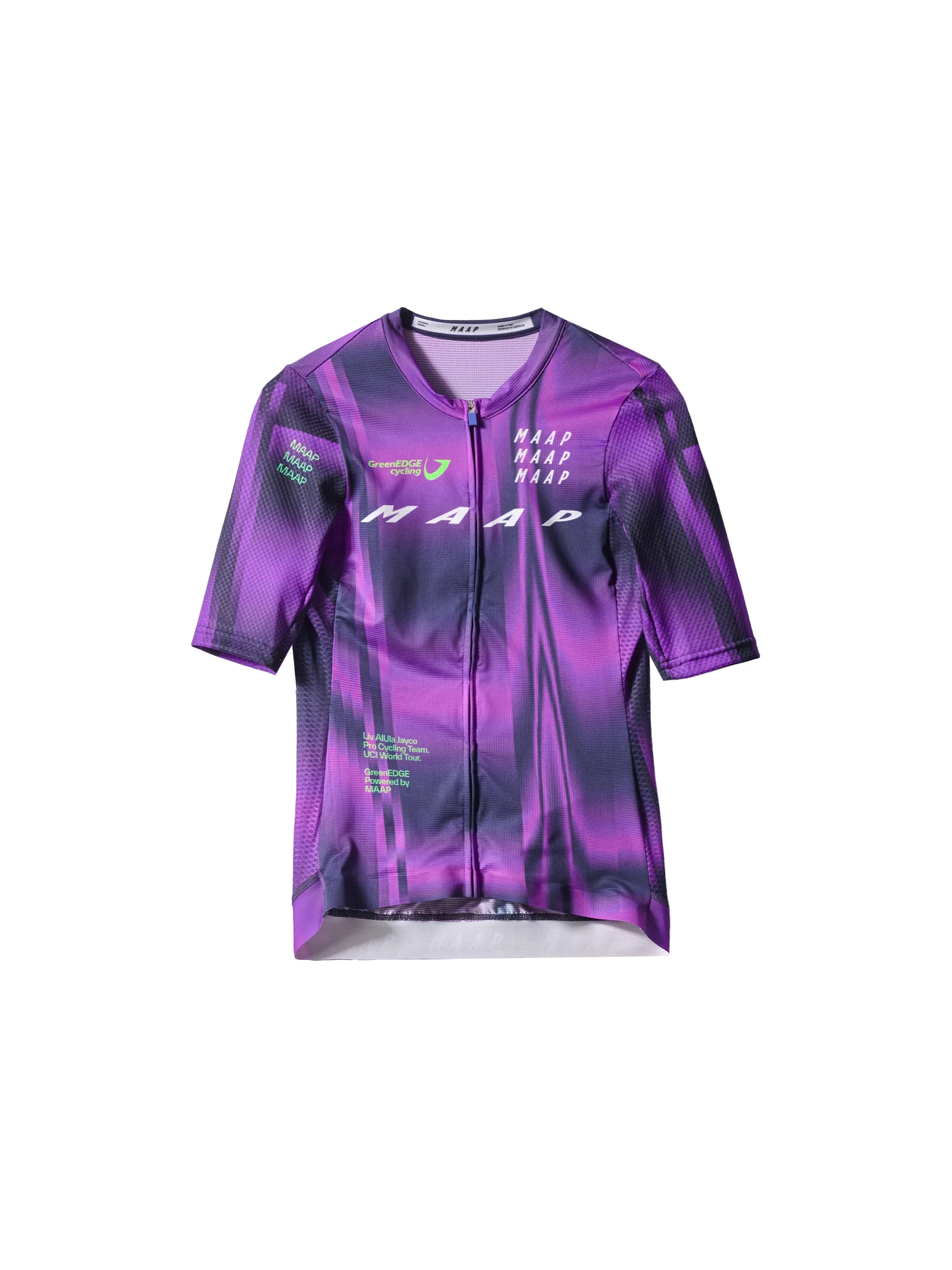 The stage is set. Get ready to rally. The Women's WorldTour Pro Air Jersey is a lightweight, performance-driven jersey that combines moisture-wicking technology with breathable fabrics. Engineered for maximum airflow and optimal cooling for uncompromised performance. Details - Recycled Yarns - Moisture Wicking - Lightweight Features - The high-performance silhouette of our Race Fit features advanced sleeve fit, low-profile collar and tailored panelling for speed and precision. - Optimal airflow in warmer conditions with micro-perforated fabrics engineered with majority recycled yarns. - Advanced strength and enhanced comfort combine with the carbon yarn warp-knit sleeve. - No bulk and an elevated fit from the bonded front hem construction. - Keeping the jersey securely in place is an elasticated rear hem with an internal silicone logo print. Specifications - Product Weight: 150 g - Main Fabric Content: 90% Recycled Polyester, 10% Elastane - Fit: Race - Temperature Range: 20-40 DEGREES - Riding Conditions: Hot - SKU: MPWJE251925_ARMD