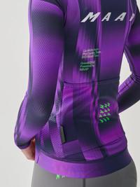 The stage is set. Get ready to rally. The Women's WorldTour Pro Air Long Sleeve Jersey is a lightweight, performance-driven jersey that combines moisture-wicking technology with breathable fabrics. Engineered for maximum airflow and optimal cooling for uncompromised performance. Details - Recycled Yarns - Moisture Wicking - Lightweight Features - The high-performance silhouette of our Race Fit features advanced sleeve fit, low-profile collar and tailored panelling for speed and precision. - Optimal airflow in warmer conditions with micro-perforated fabrics engineered with majority recycled yarns. - Advanced strength and enhanced comfort combine with the carbon yarn warp-knit sleeve. - No bulk and an elevated fit from the bonded front hem construction. - Keeping the jersey securely in place is an elasticated rear hem with an internal silicone logo print. Specifications - Product Weight: 180 g - Main Fabric Content: 90% Recycled Polyester, 10% Elastane - Fit: Race - Temperature Range: 20-40 DEGREES - Riding Conditions: Hot - SKU: MPWLS251325_ARMD