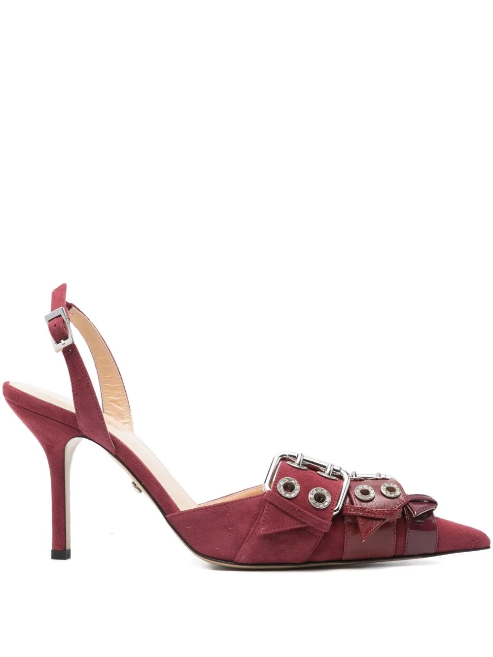 100mm buckle-detail eyelet pumps Highlights Made in United States Composition Lining: Calf Leather 100% Sole: Calf Leather 100% Outer: Calf Suede 100% SIZE & FIT Measurement HEEL 3.93 in(10 cm)