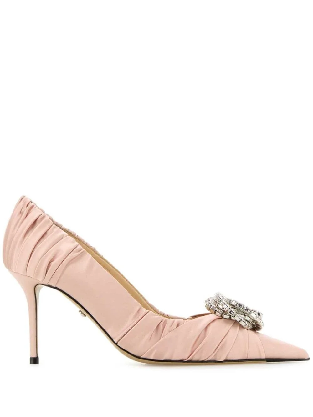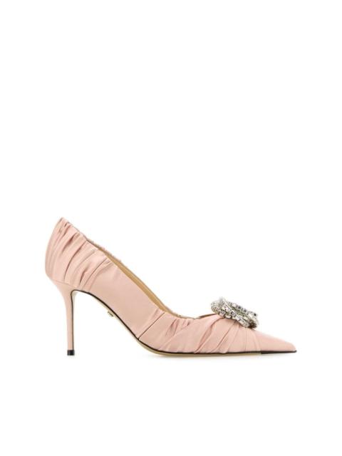 85mm satin pumps Highlights - Powder pink - Satin weave - Slip-on style - 85mm stiletto heel - Ruched detailing - Brooch detail - Pointed toe - Leather sole Made in Italy Composition Outer: Satin 100% Lining: Leather 100% Sole: Leather 100% SIZE & FIT Measurement HEEL 3.34 in(8.5 cm)