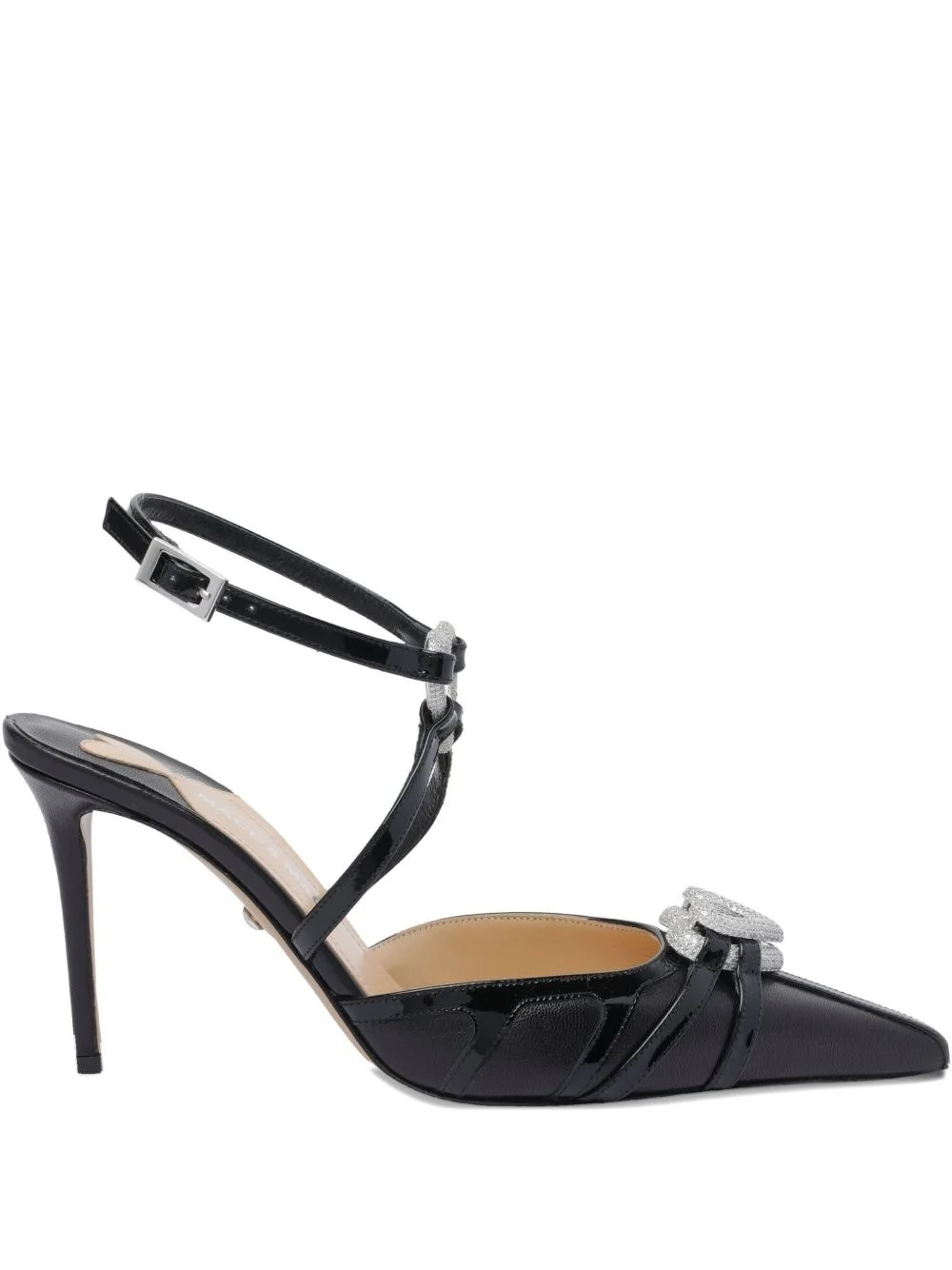 95 mm double-heart pumps Highlights - Black - Ankle buckle closure - Pointed toe - Frontal double heart detail Made in Italy Composition Outer: Patent Calf Leather 100% Sole: Calf Leather 100% Lining: Calf Leather 100%