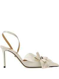 95mm Orchid pumps Highlights - White - Elasticated slingback strap - Branded leather insole - Leather sole - High stiletto heel Made in Italy Composition Outer: Satin 100% Lining: Calf Leather 100% Sole: Calf Leather 100% SIZE & FIT Measurement HEEL 3.74 in(9.5 cm)