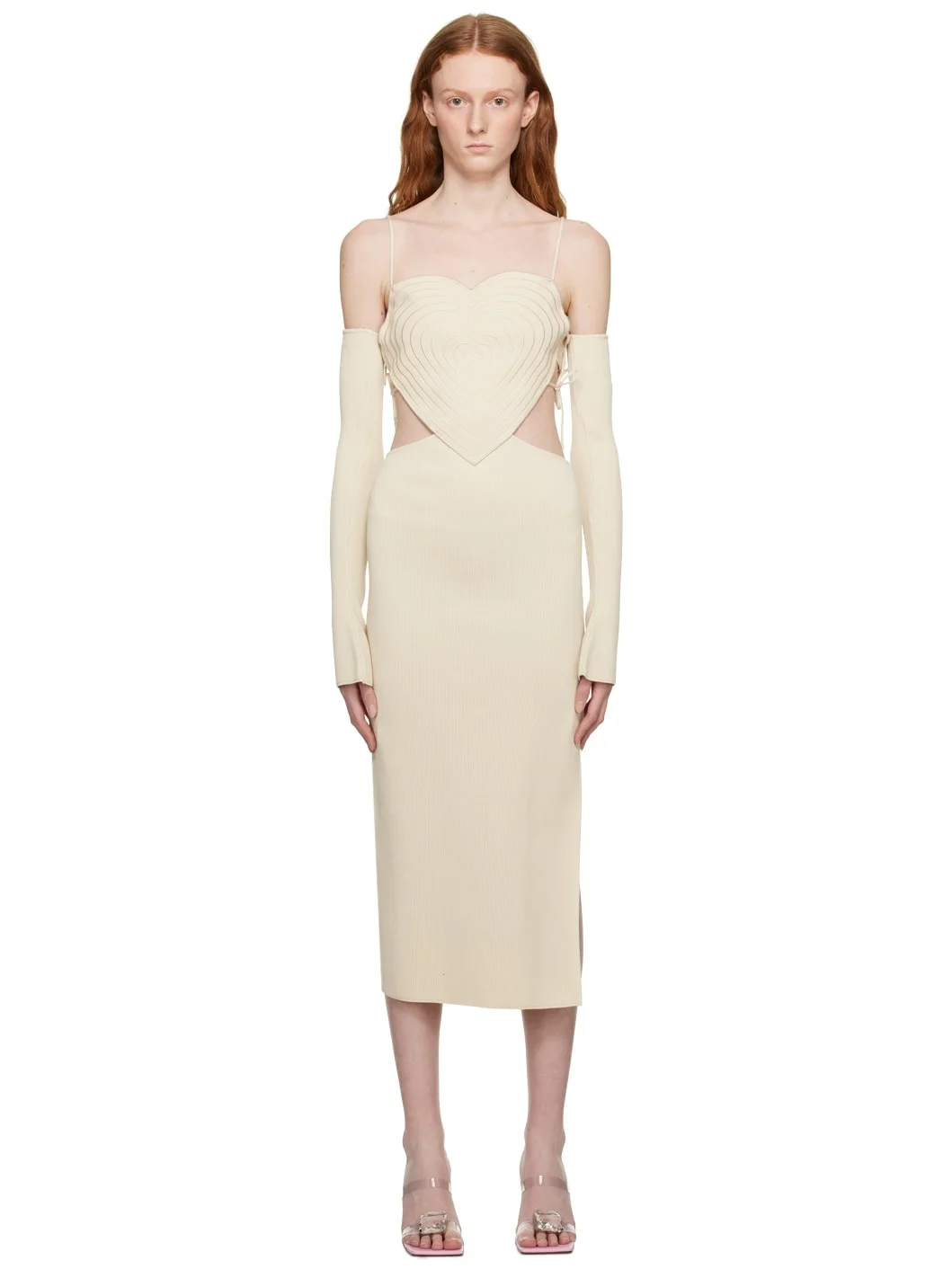 Beige Heart Midi Dress