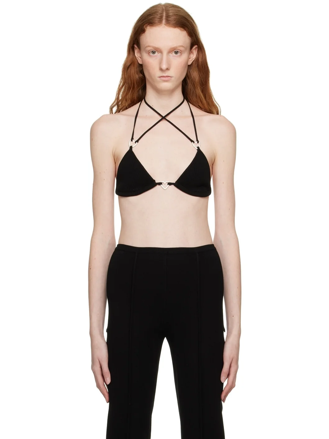 Rib knit viscose-blend bralette-style top. Graphic hardware with crystal-cut detailing throughout. · Plunging V-neck · Self-tie halter strap · Self-tie strap at back Supplier color: Black 70% viscose, 30% polyester. Made in Italy 231404F111010