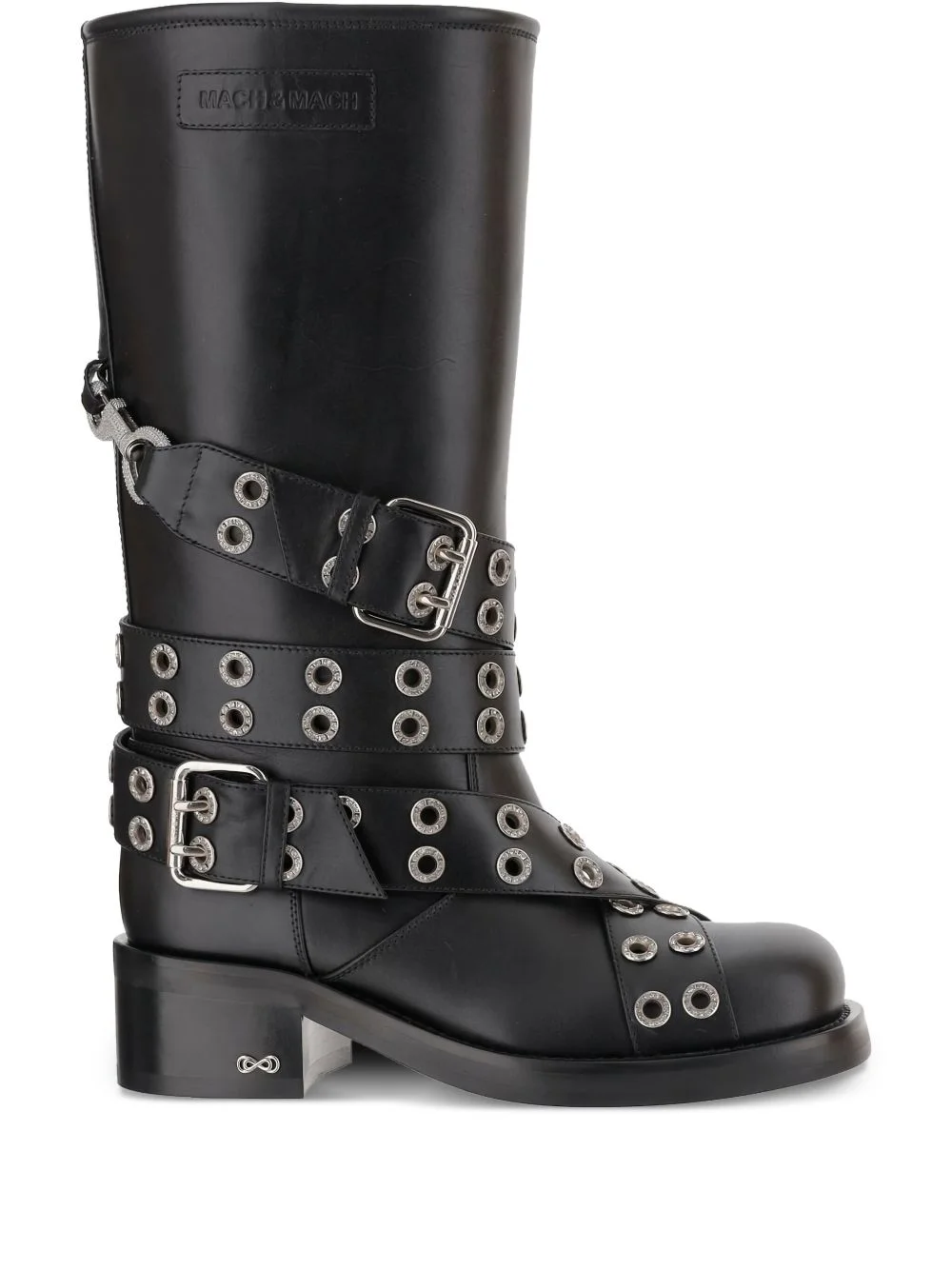 50mm eyelet-detail buckle-strap boots Highlights - Black - Eyelet embellishment - Buckle-strap detail - Block heel - Silver-tone hardware - Pull-on style Made in Italy Composition Lining: Kid Leather 100% Sole: Calf Leather 100% Outer: Calf Leather 100% SIZE & FIT Measurement HEEL 1.96 in(5 cm)