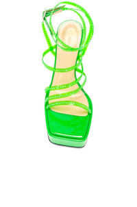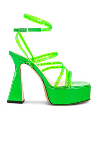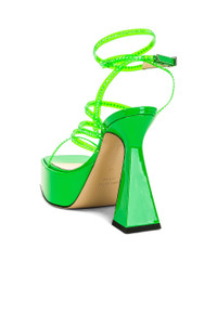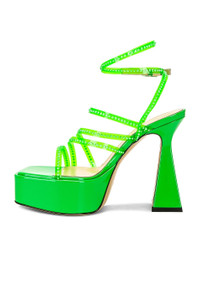 Details - PVC and patent leather upper with leather sole - Made in Italy - Adjustable ankle strap with buckle closure - Strappy vamp with crystal embellished trims - Tapered heel - Approx 125mm/ 5 inch heel - Approx 40mm/ 1.5 inch platform - Our Style No. MCHF-WZ14 - Manufacturer Style No. R23-S0196-PVC-899